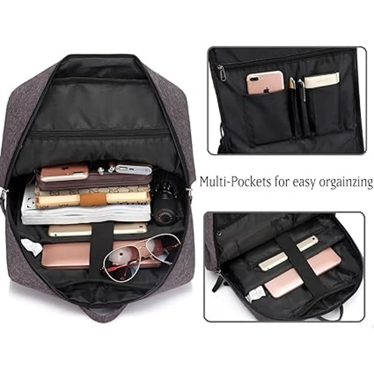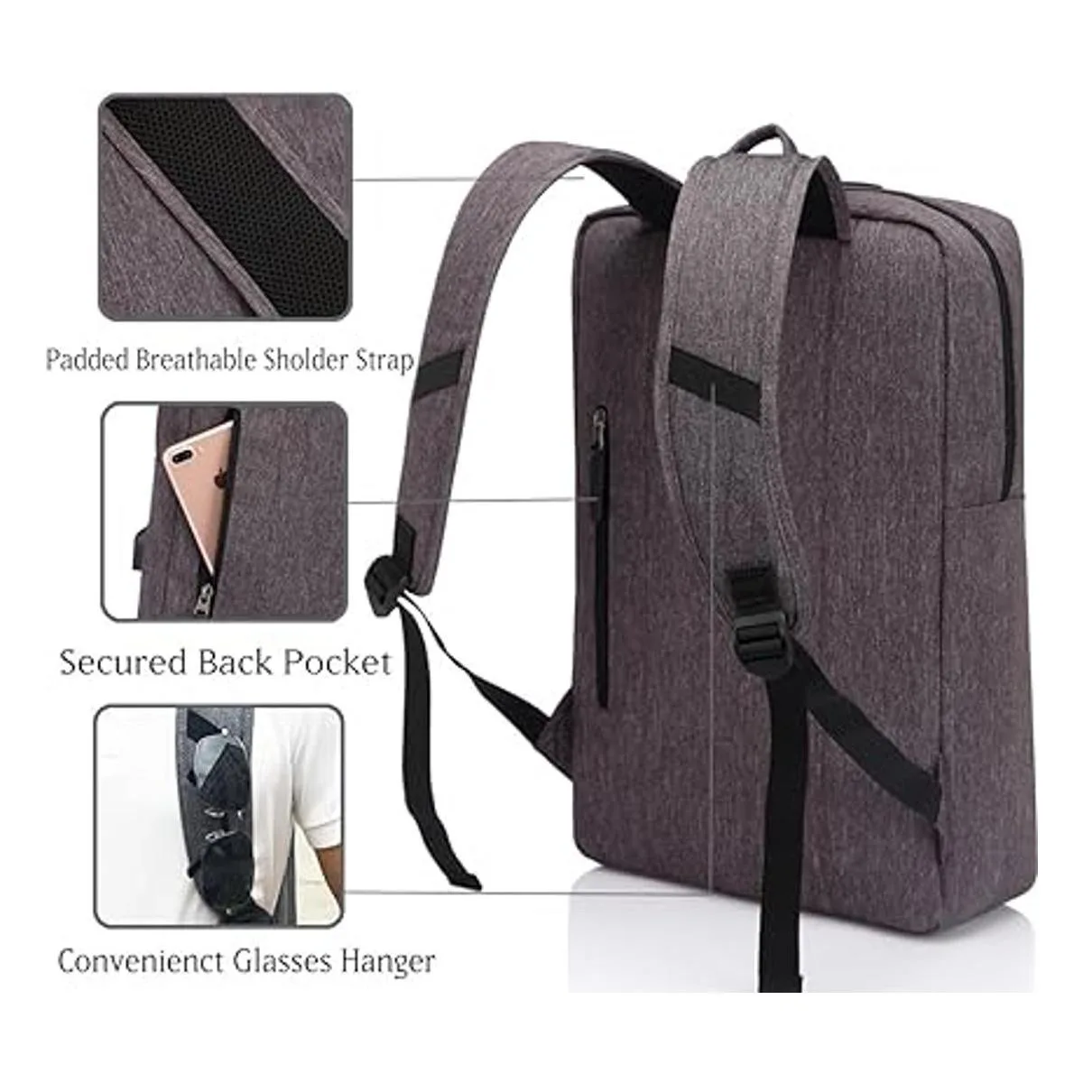 Mochila delgada para laptop de negocios para computadora de 17 pulgadas con puerto USB, Gris oscuro, 17 pulgadas, Mochila