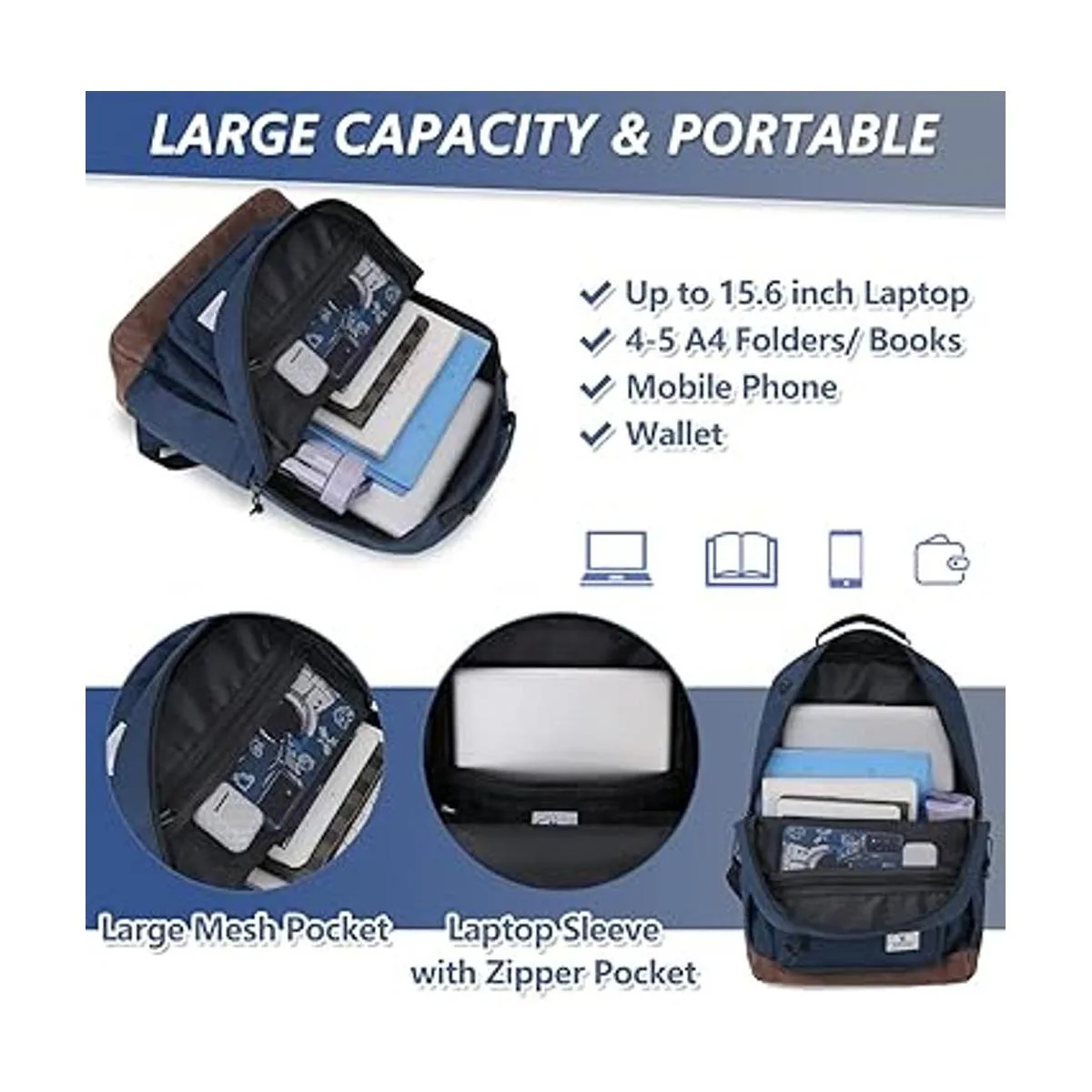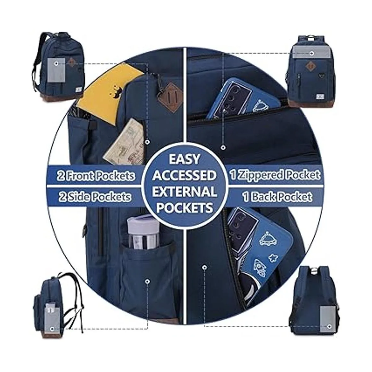 Múltiples bolsillos: la mochila ligera sostiene bien una botella de agua o paraguas en los bolsillos laterales se puede ajustar, 3 bolsillos delanteros exteriores con cremallera, 1 bolsillo trasero antirrobo. El compartimento principal tiene 2 bolsillos interiores y un compartimento dedicado para laptop de hasta 15.6 pulgadas, es un montón de espacio para tus llaves, teléfono celular, cartera, etc. Puedes organizar tus cosas con los bolsillos de diferentes tamaños.