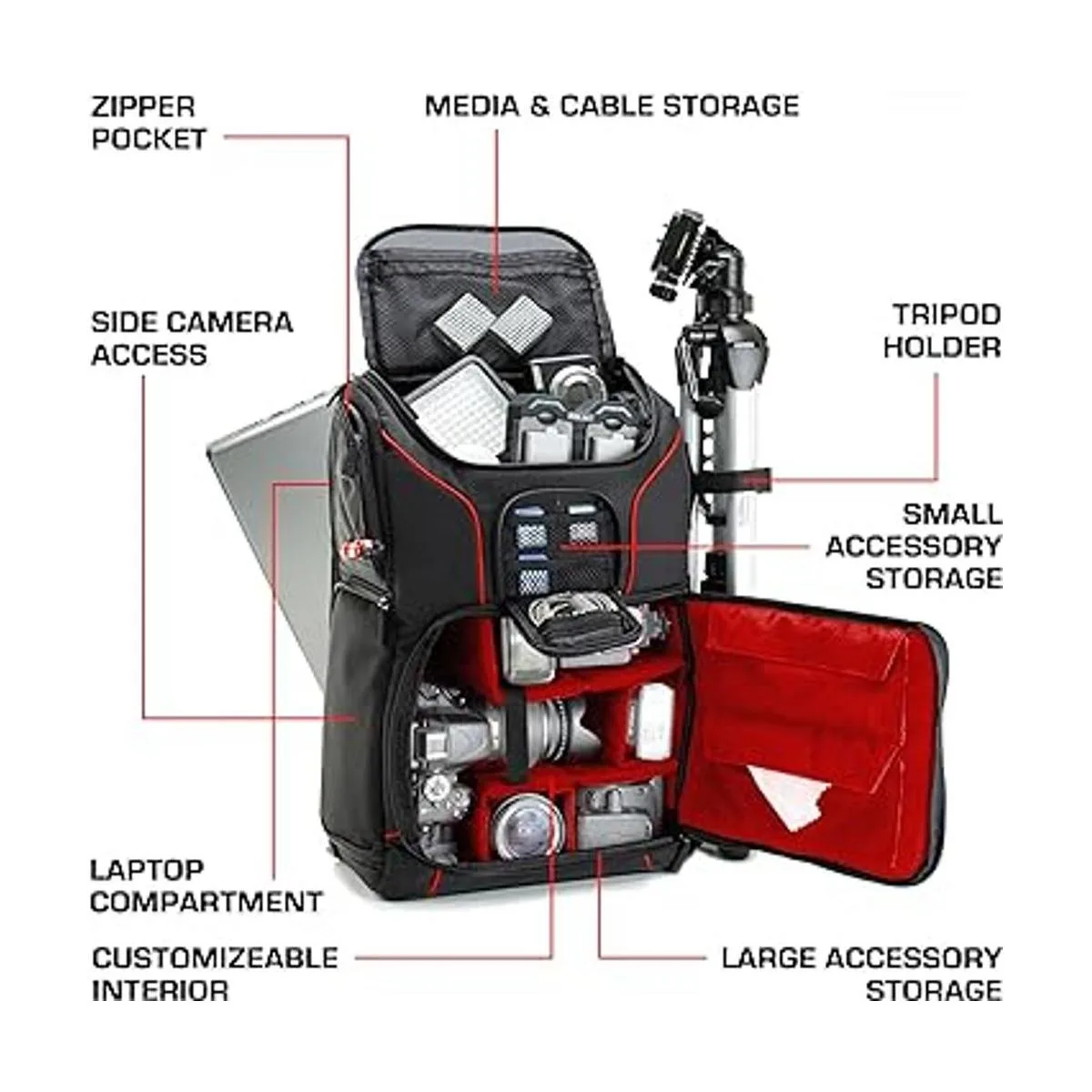 Mochila para cámara réflex digital de 39.62 cm, compartimento para portátil USA Gear cuenta con separadores acolchados, soporte para trípode, cubierta para lluvia, para cámaras réflex digitales Nikon, Canon, Sony, Pentax y más