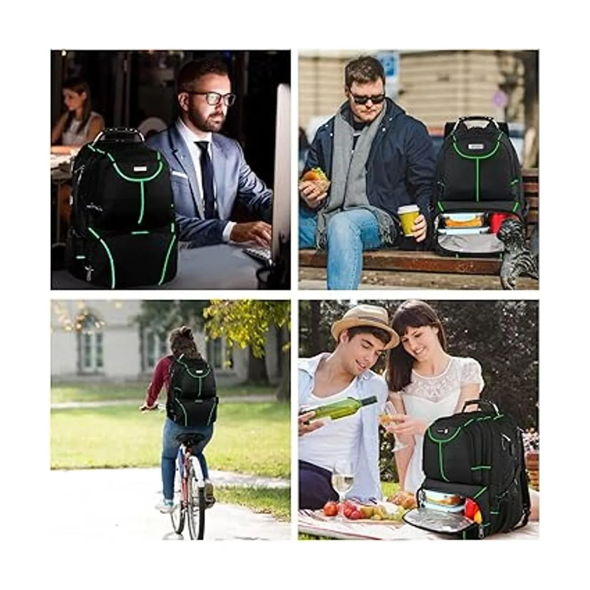 Función de refrigeración aislada y a prueba de fugas: nuestra mochila de almuerzo no solo mantiene la comida caliente, sino que también mantiene las bebidas frías durante aproximadamente 24 horas. La capa de aislamiento de alta calidad del compartimento de la lonchera mantiene la comida fresca y caliente, lo que hace que sea fácil de limpiar y almacenar alimentos. La mochila térmica de viaje es adecuada para la escuela, oficina, picnic, playa, viajes, exteriores e interiores. Dimensiones del compartimento refrigerador: 11.8 x 7.8 x 7.8 pulgadas