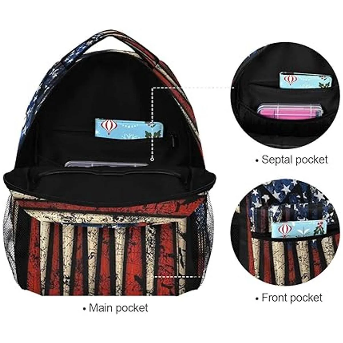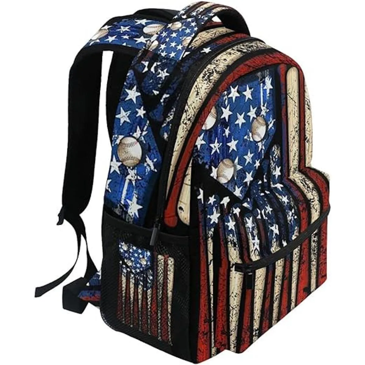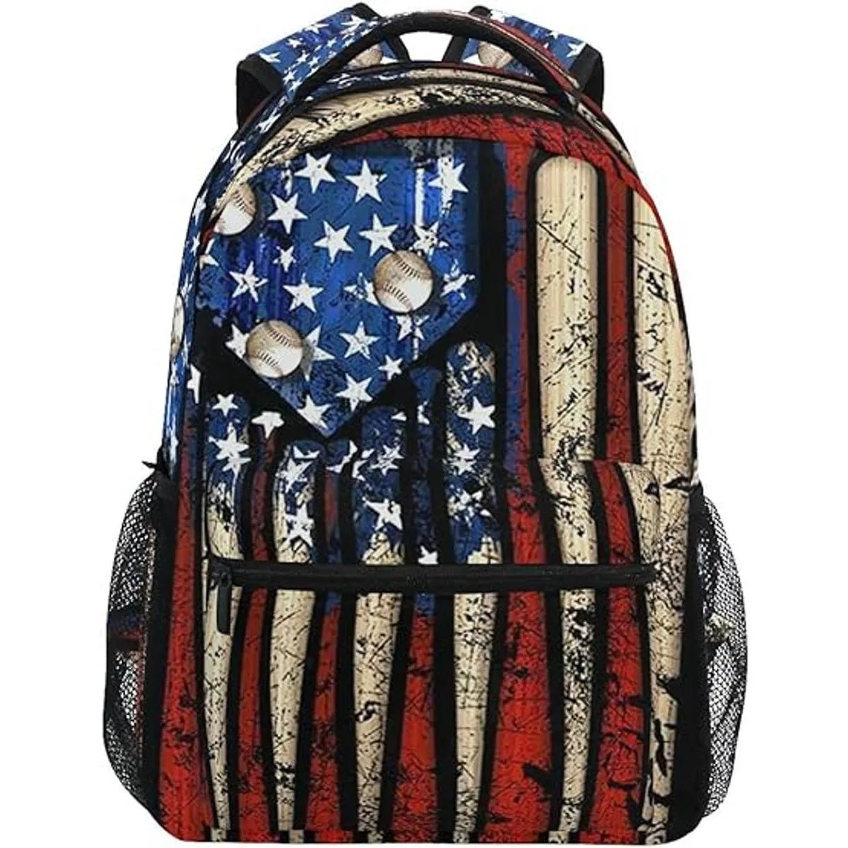 Mochila patriótica con estampado de béisbol de Estados Unidos para niños y niñas, mochila para computadora, mochila de viaje, senderismo, camping, gimnasio, Impresión de béisbol de la bandera americana, 11.5x8x16 inch