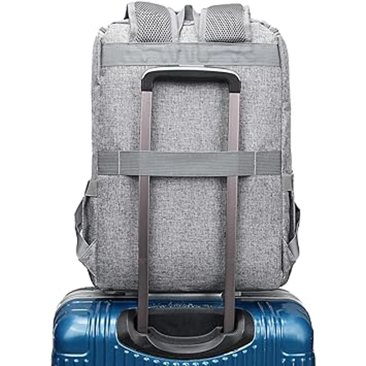 Funcional y seguro: una correa de equipaje permite que la bolsa de viaje para portátil se ajuste en el equipaje/maleta, se deslice sobre el tubo vertical del asa del equipaje para un transporte más fácil. Los bolsillos externos en ambos lados están hechos de tela elástica, se expande para asegurar botellas de agua de varios tamaños y paraguas compacto