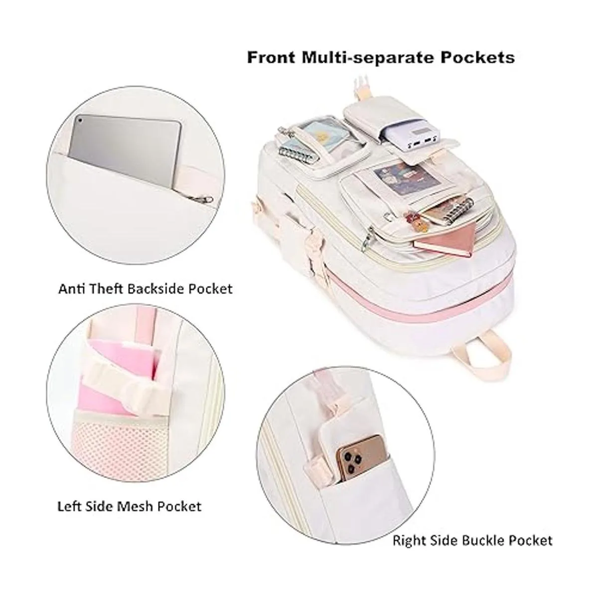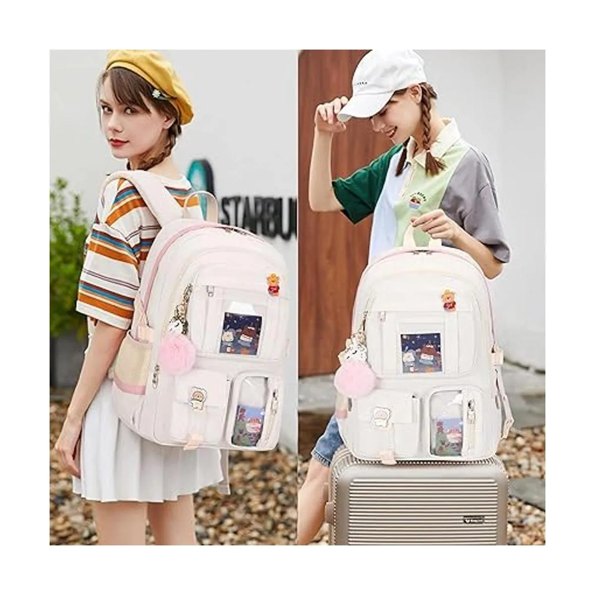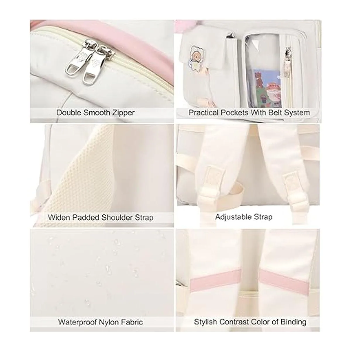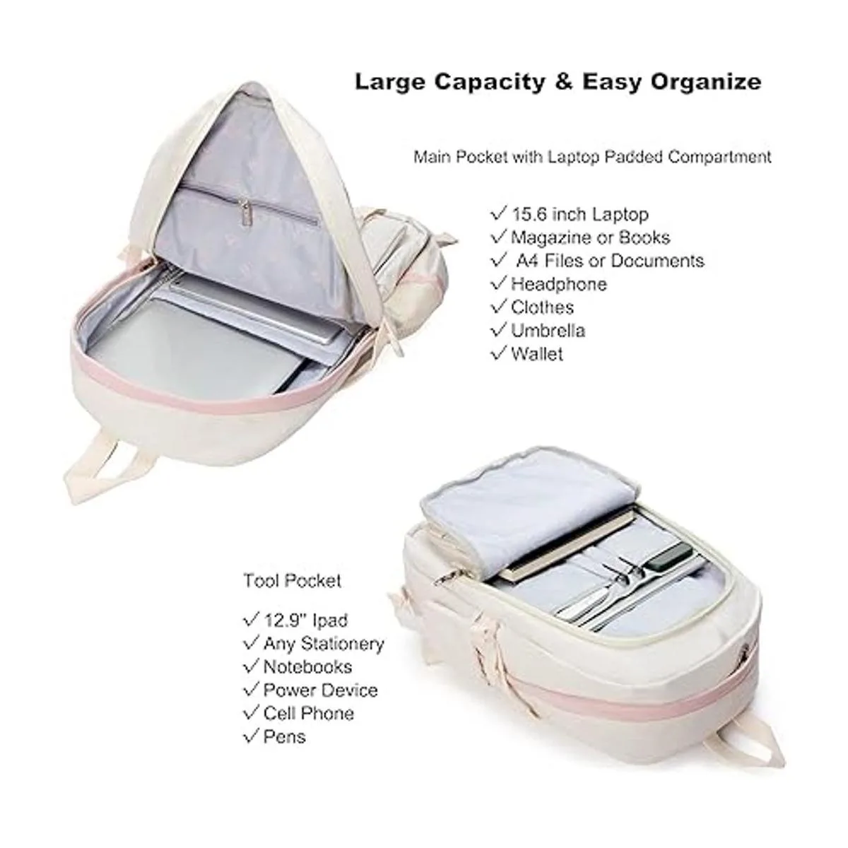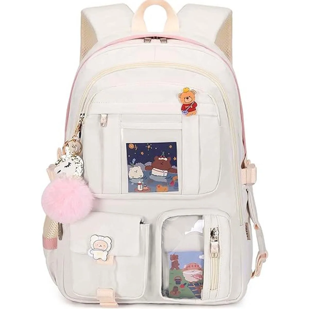 Mochilas para laptop de 16 pulgadas, mochila universitaria, mochila grande de viaje, kawaii para adolescentes, niñas, mujeres, estudiantes, Blanco crudo, L, Mochilas Daypack