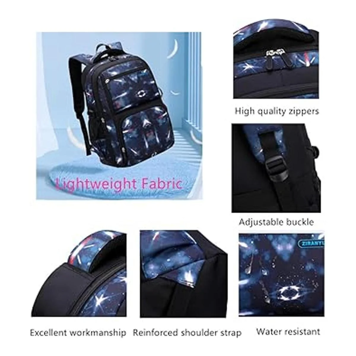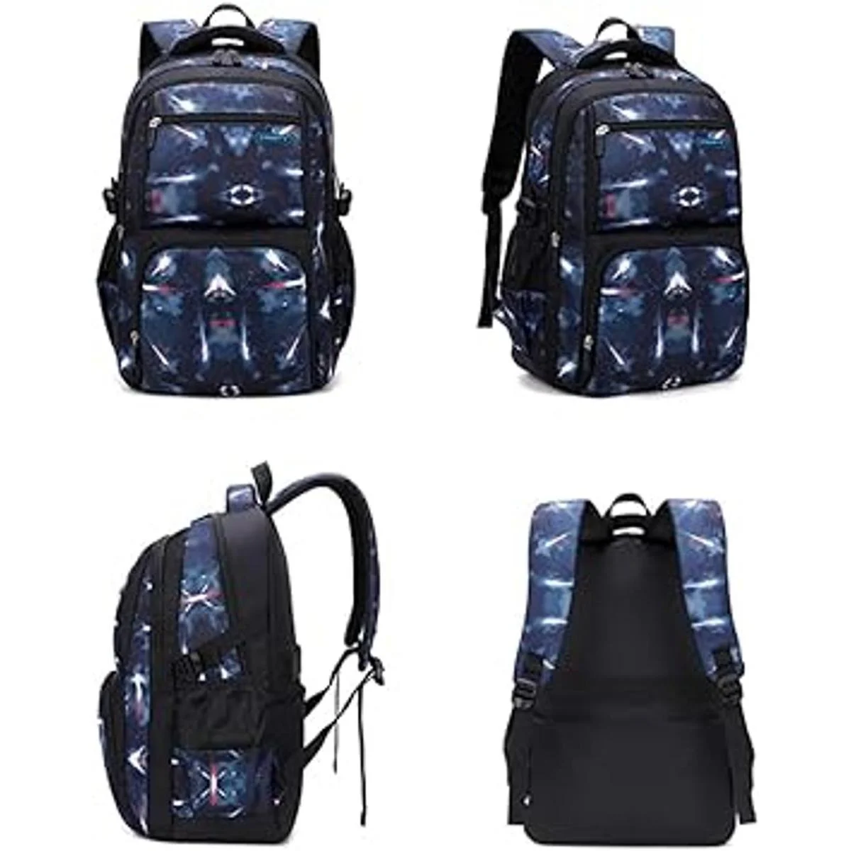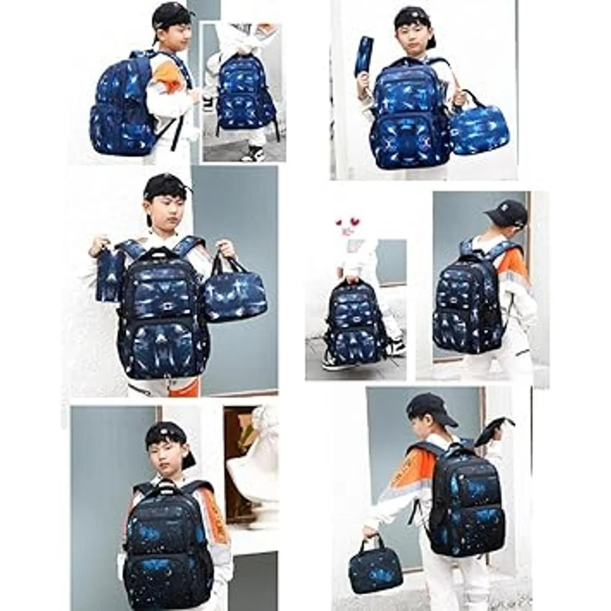 Mochilas para niños, bolsa de escuela primaria, bolsa de libros para niños, juego casual, galaxia espacial, mochila duradera con bolsa de almuerzo, #01 Blackblue Galaxy, L, Juego de mochila de 3 piezas