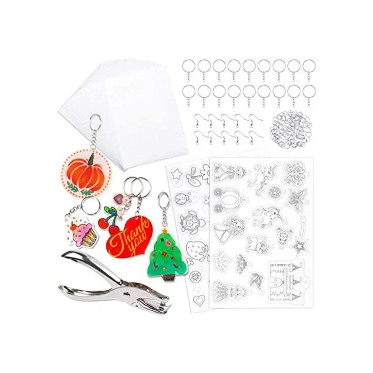 Divertidas hojas retráctiles: incluye 15 papeles de arte retráctiles en blanco, 32 imágenes rastreables, 20 llaveros, 10 ganchos para las orejas, 100 anillos abiertos y 1 perforador de agujeros. Haz tus propios adornos con estas divertidas sábanas retráctiles y comparte algo interesante desde la infancia con tus hijos