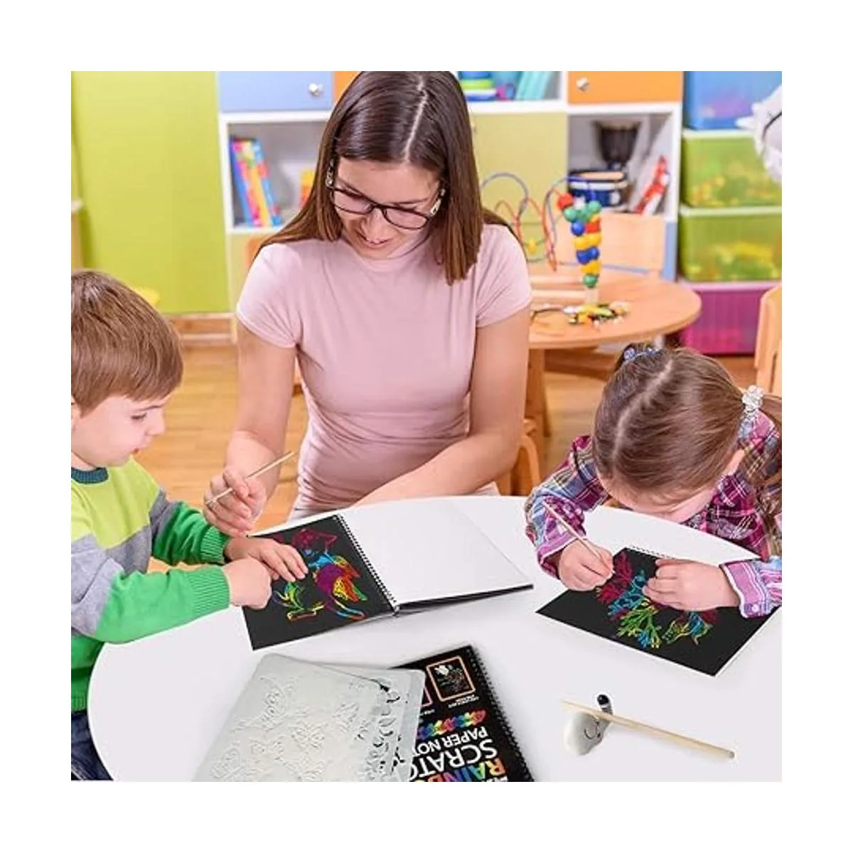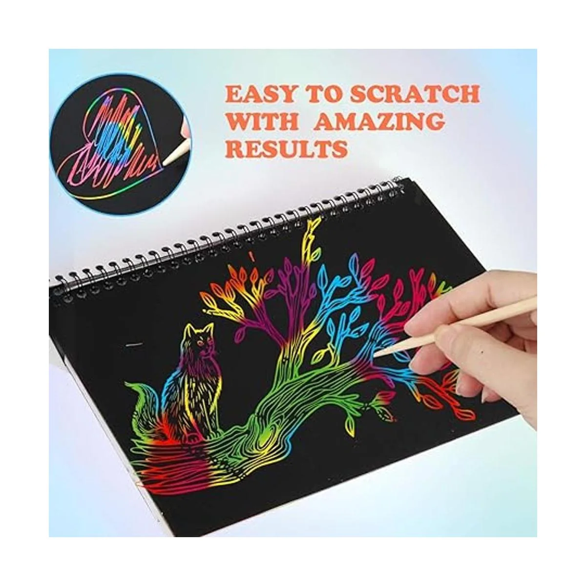 Deja que la creatividad brille: crea tus propios diseños exquisitos en forma de rascar, con fondos multicolor que cobran vida cuando rascas el revestimiento negro. A tus pequeños artistas les encantará explorar el mundo entretenido de Scratch and Sketch con estos libros de actividades de arte para rascar. Divertido kit de arte para rascar que permite a los niños construir confianza en su creatividad