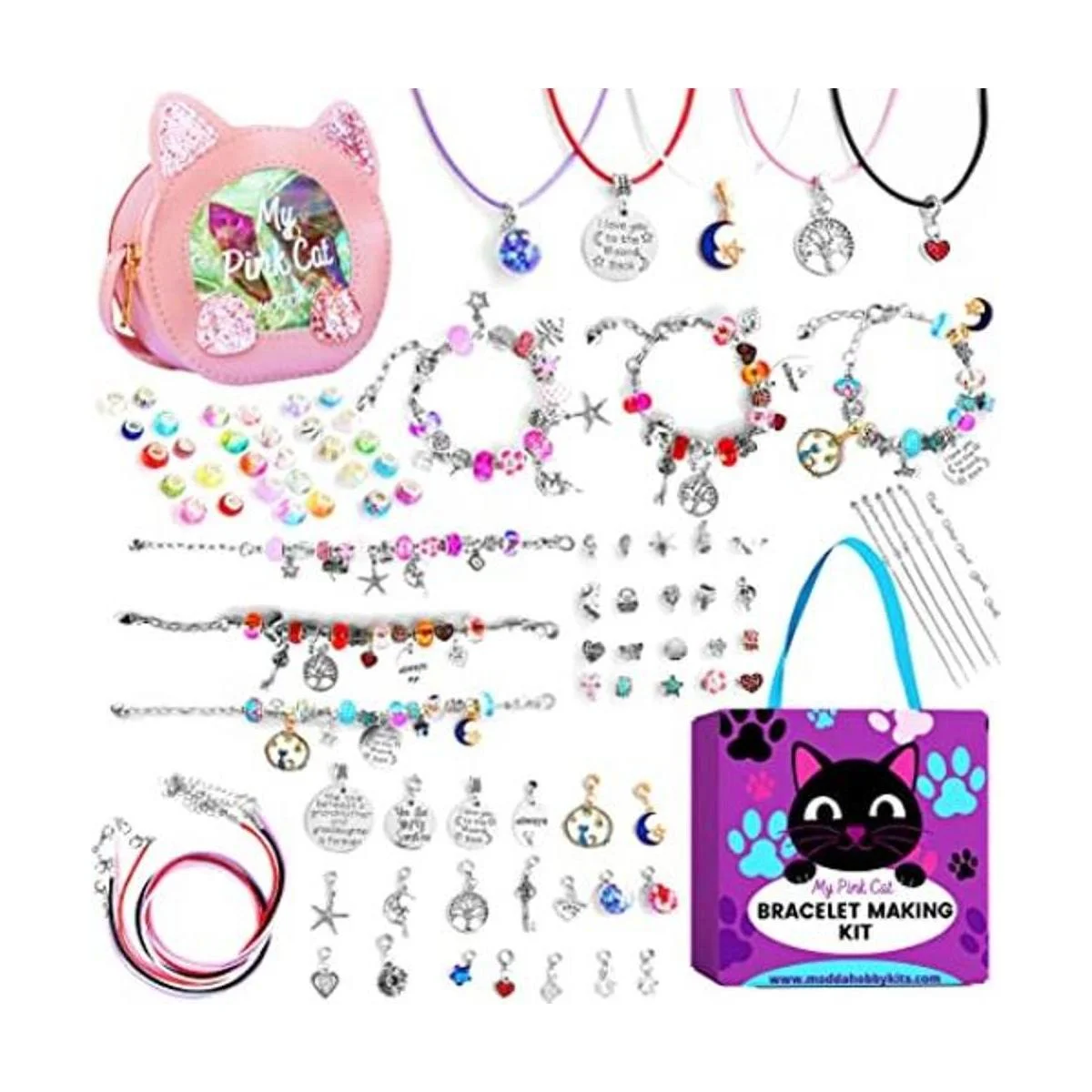 Modda Kit de fabricación de pulseras con bonito bolso de hombro, cuentas surtidas y encantos, kit de fabricación de joyas para niñas, manualidades para niños, juguetes para niñas, regalo para niñas de 8 a 12 años