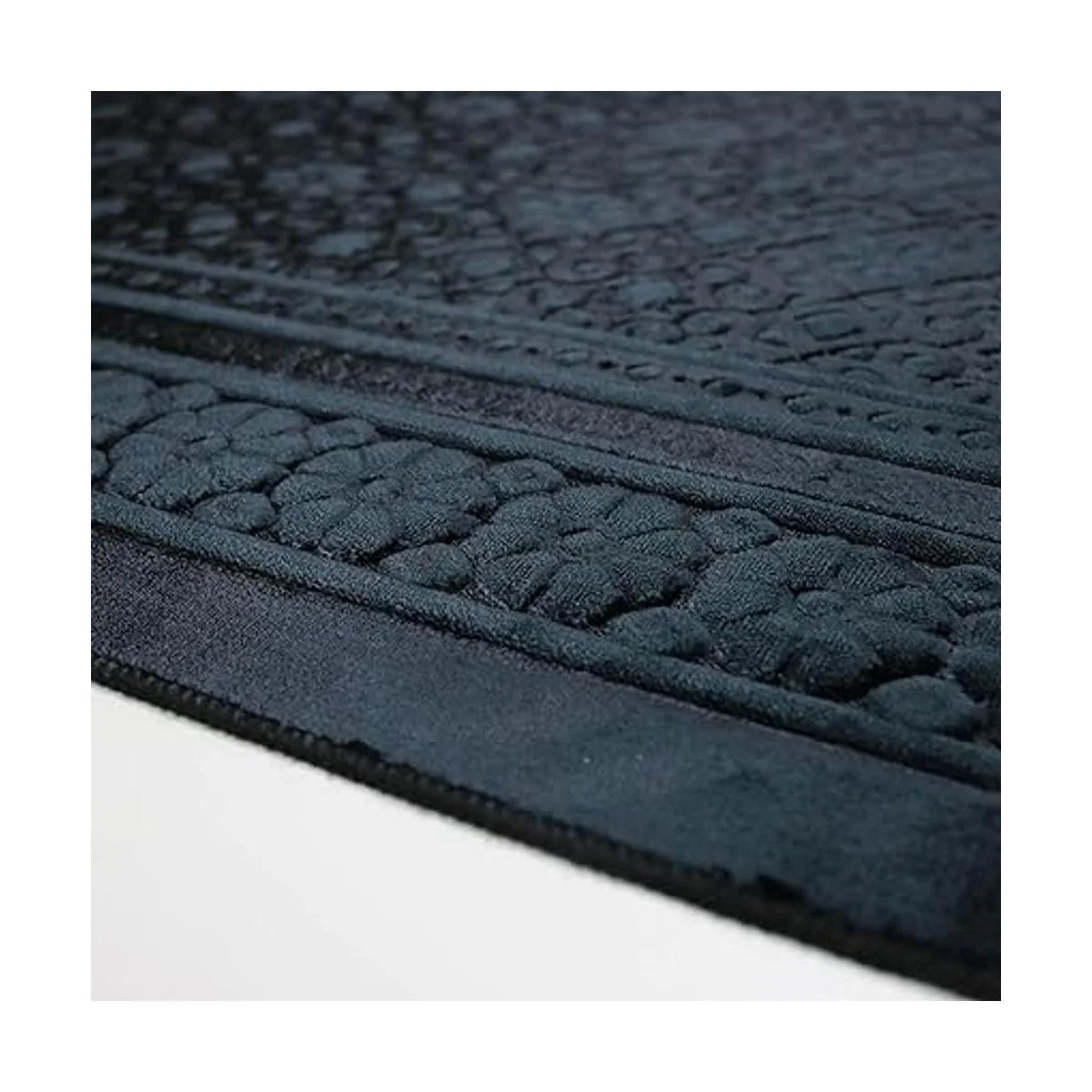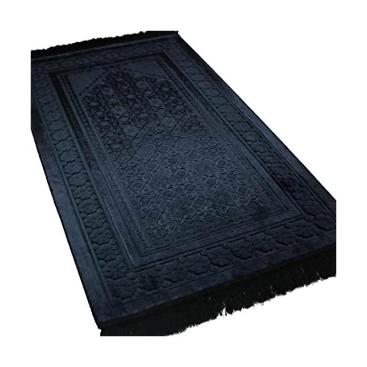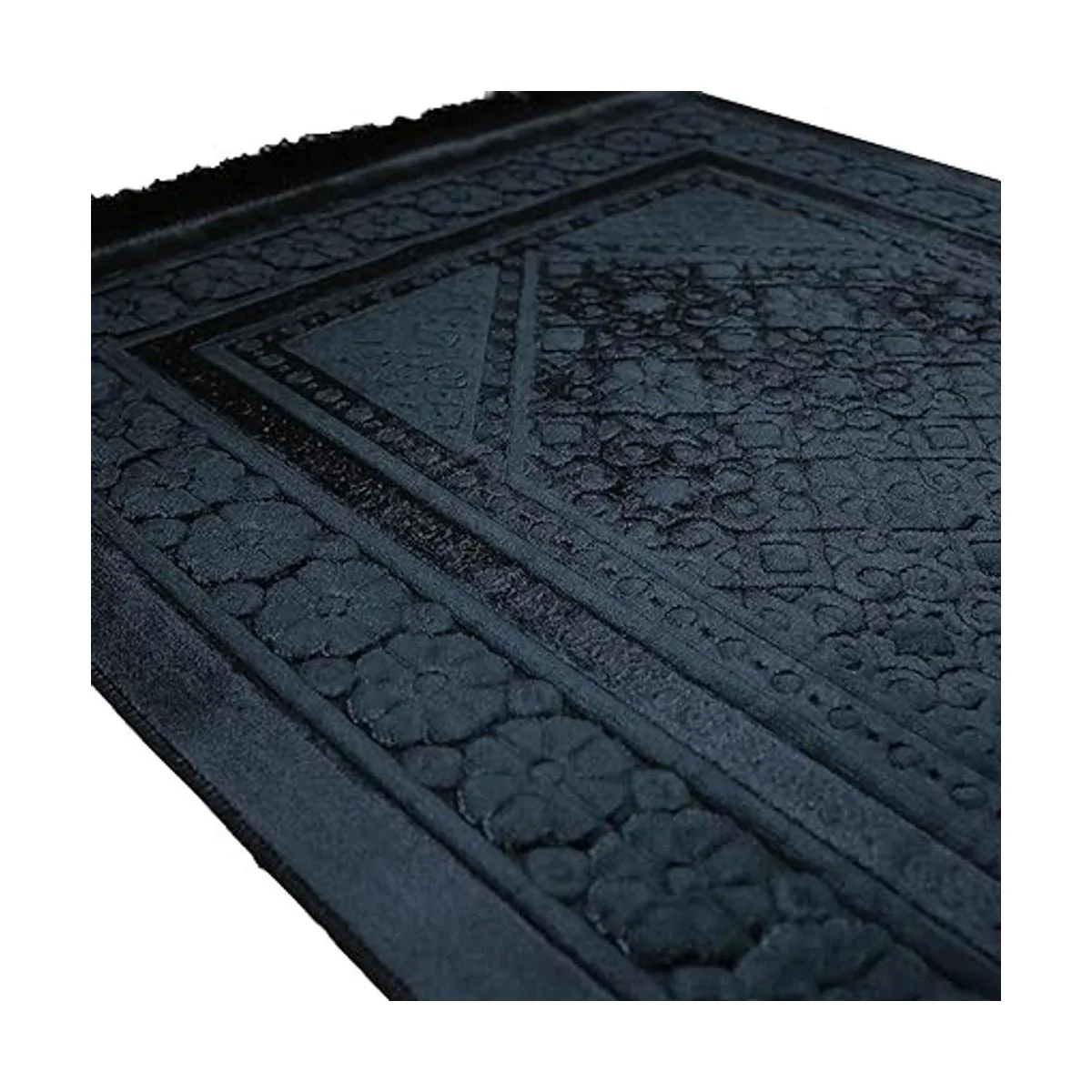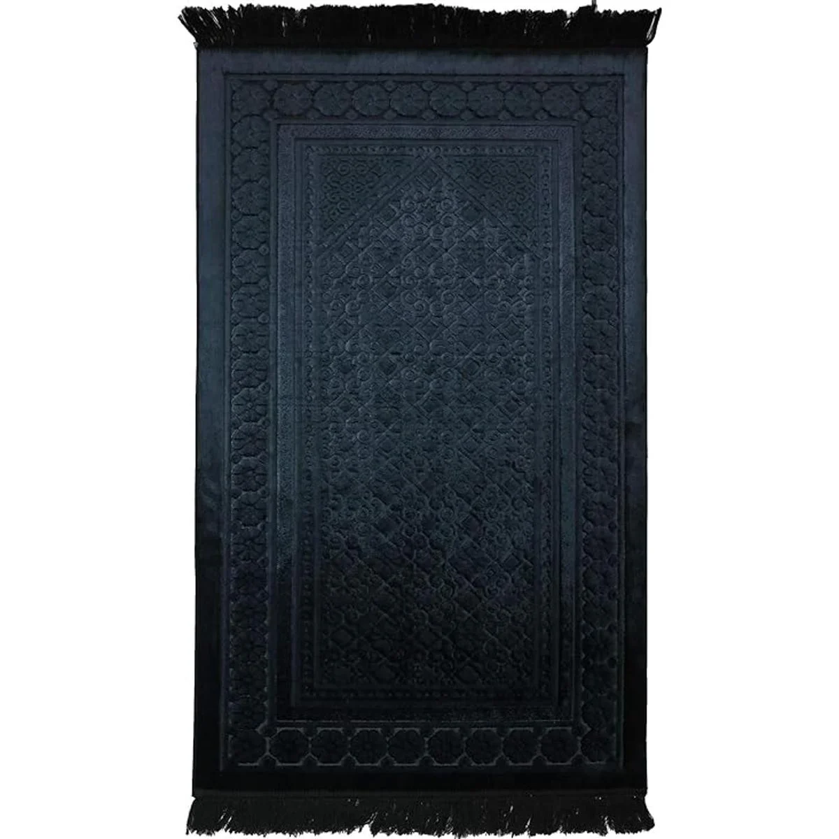 Modefa Alfombra de oración de terciopelo Alfombra de felpa suave turca Janamaz sajada para hombres y mujeres Tapete de oración sólido liso Ramadán Eid con cuentas de oración Sello floral de lujo negro