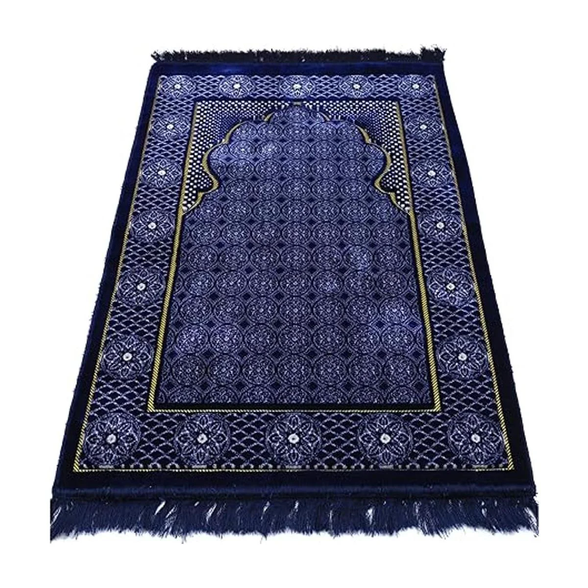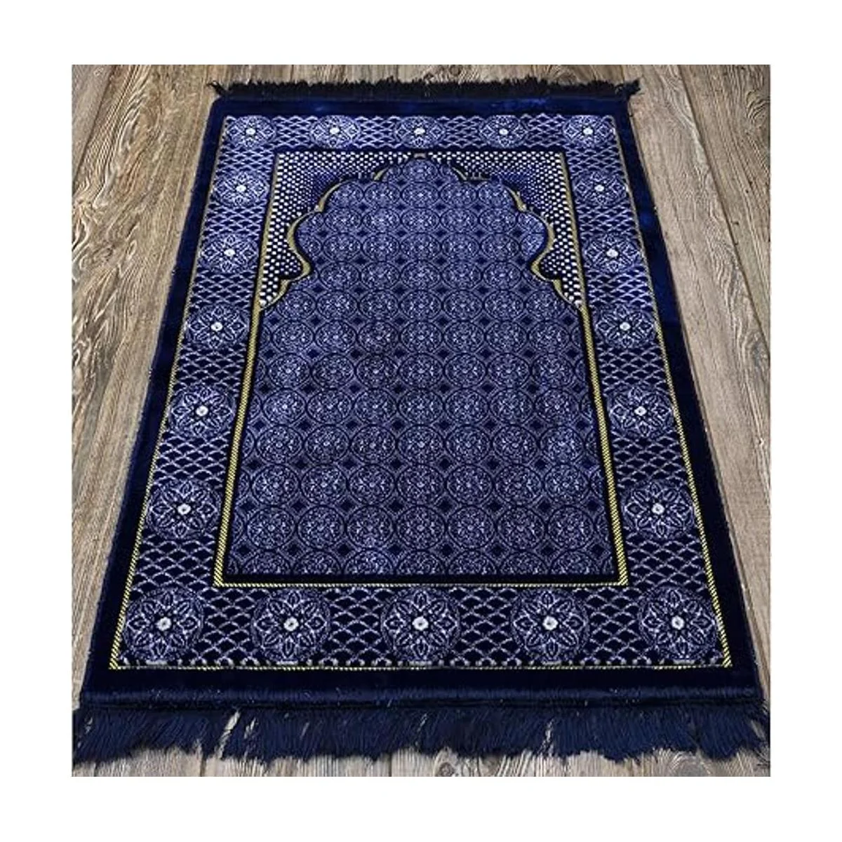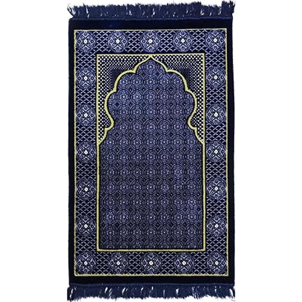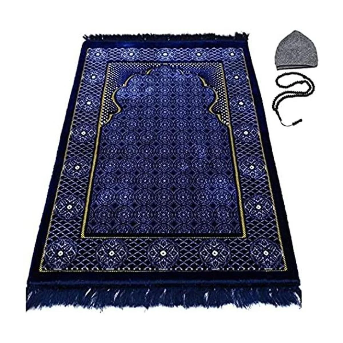 Modefa Alfombra de oración islámica turca tradicional musulmana Janamaz Sajada Alfombra de terciopelo de felpa para hombres y mujeres Regalo de Ramadán o Eid Gratis Kufi Cap Beads Sello floral Ipek azul 2