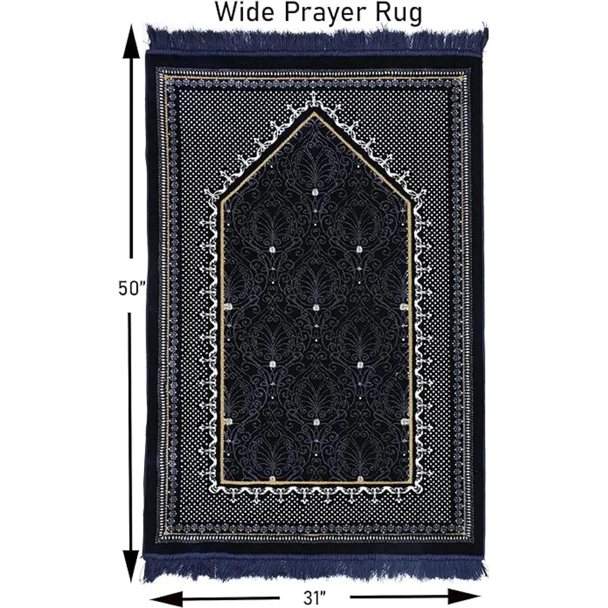 Tamaño más grande: esta alfombra de oración es más grande que el tamaño estándar de adulto aprox. Tamaño: 31.5 x 47.2 in con borlas de 2.0 in en cada extremo.