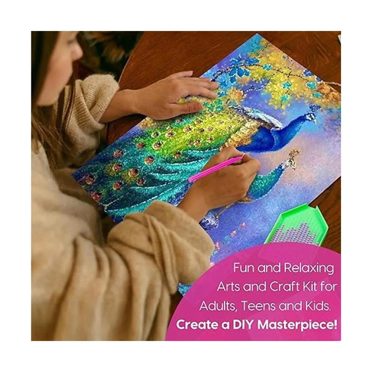 Kits de pintura de diamantes de pájaros para adultos: ya sea que seas un principiante o un profesional experimentado, este kit de pintura de diamantes para adultos te permite crear tu propia obra maestra que se ve hermosa en tu pared Deja que los jugos creativos fluyan mientras te relajas y te pierdes en este elegante arte y manualidades de diamantes de pavo real para adultos.