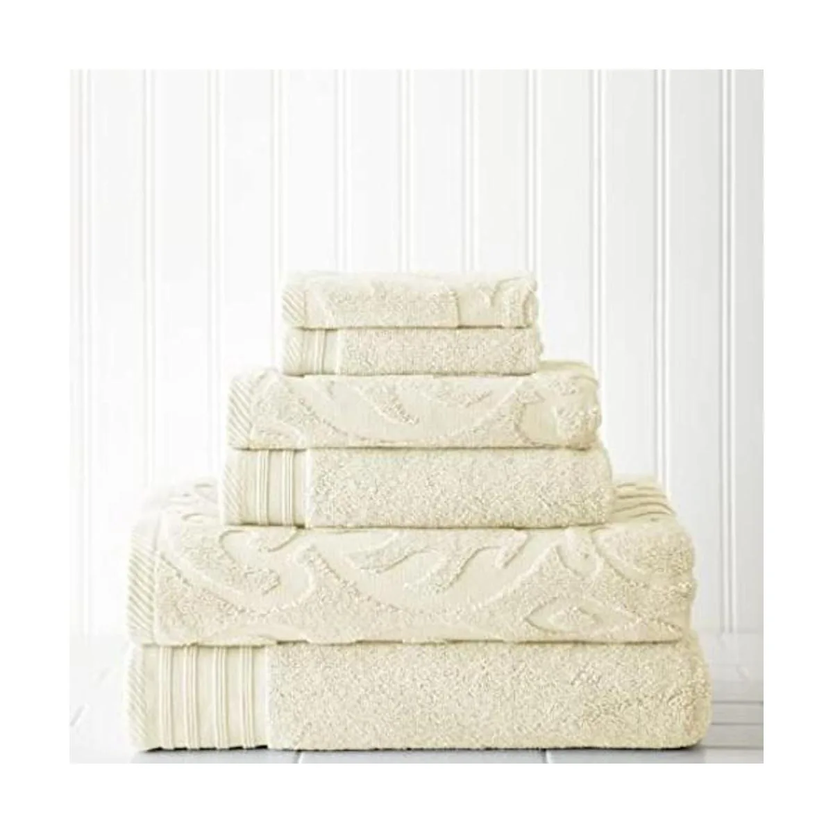 Modern Threads 6 piezas, 2 toallas de baño, 2 toallas de mano, 2 toallas de baño, medallón de jacquardsólido ultra suave, 550 GSM, 100 algodón peinado marfil