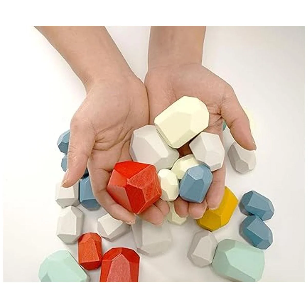 MODERNGENIC Piedras apilables de equilibrio de madera, 36 piezas de rocas de madera, bloques de construcción, juegos de clasificación y apilamiento, juguetes ligeros naturales coloridos, juguetes educativos de aprendizaje preescolar