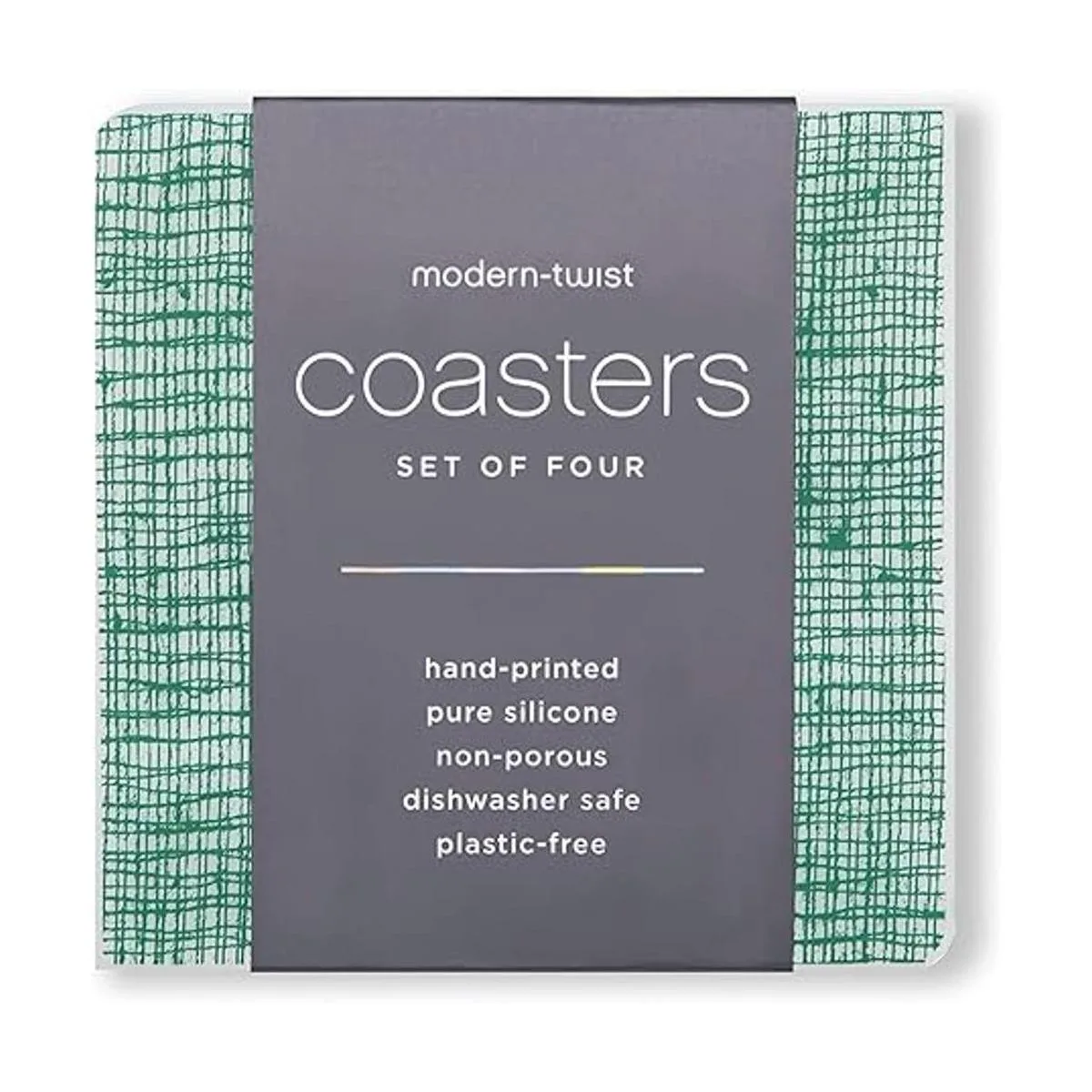 MODERNTWIST Juego de 4 posavasos, 100 silicona libre de plástico, comedor, decoración, diseño moderno, impresión de lino, pino