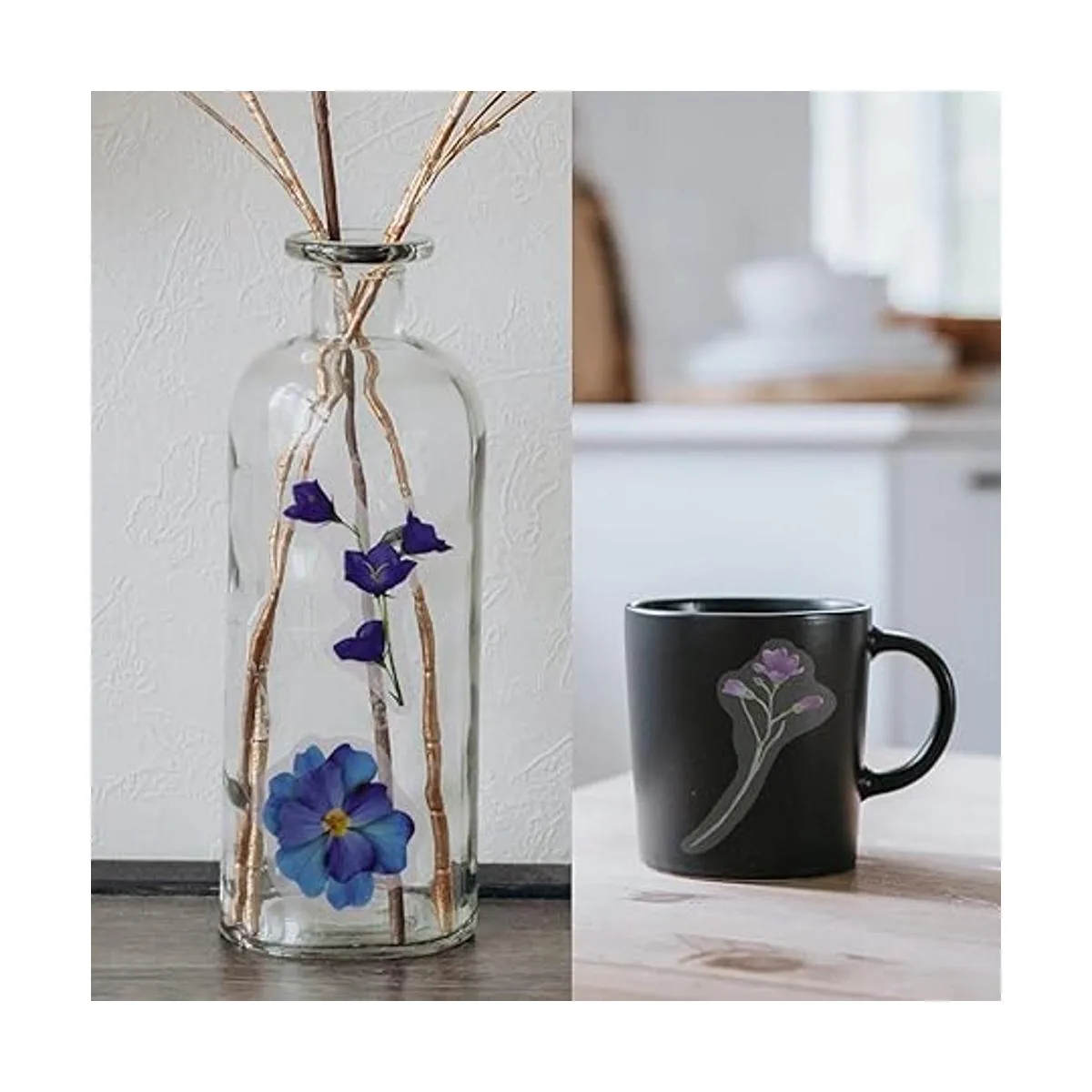 Regalo ideal: la calcomanía transparente floral adopta un diseño realista, que puede dar a las personas una sensación retro, fresca, hermosa y romántica. Embalado en una exquisita caja, es un regalo ideal para amigos en cumpleaños, Navidad y Acción de Gracias.
