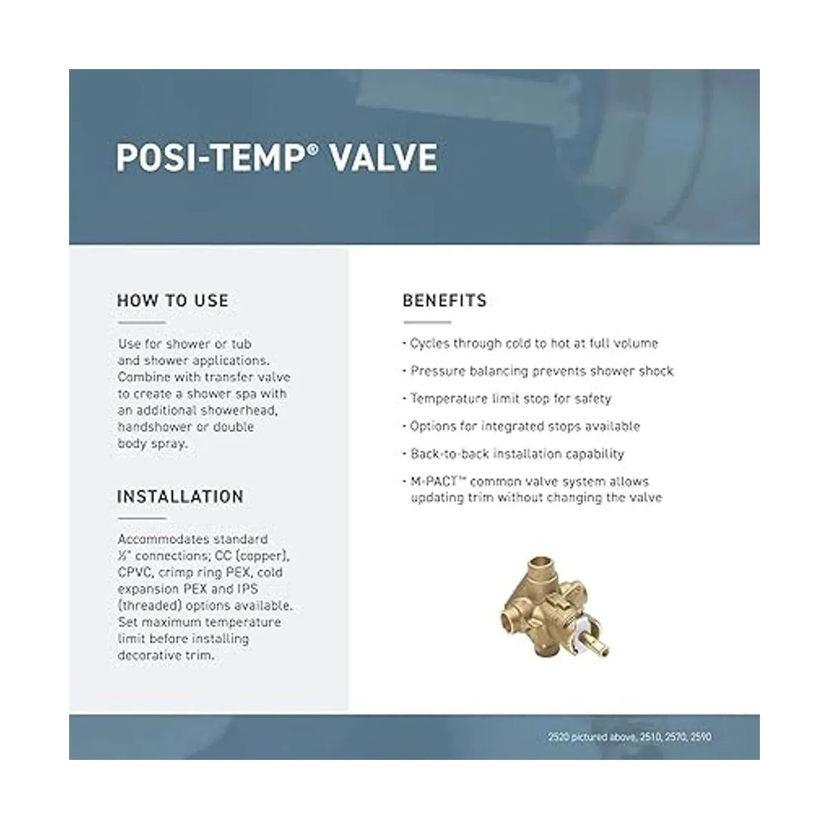 Moen T187 Chateau llave monomando PosiTemp con regulador de válvula PosiTempt Tubo presión balanceada, cromado