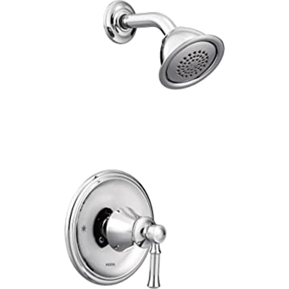 Moen T2182 Dartmoor Recorte de temperatura positiva de 1 mango con cabezal de ducha de una sola función, requiere válvula, 1, cromo