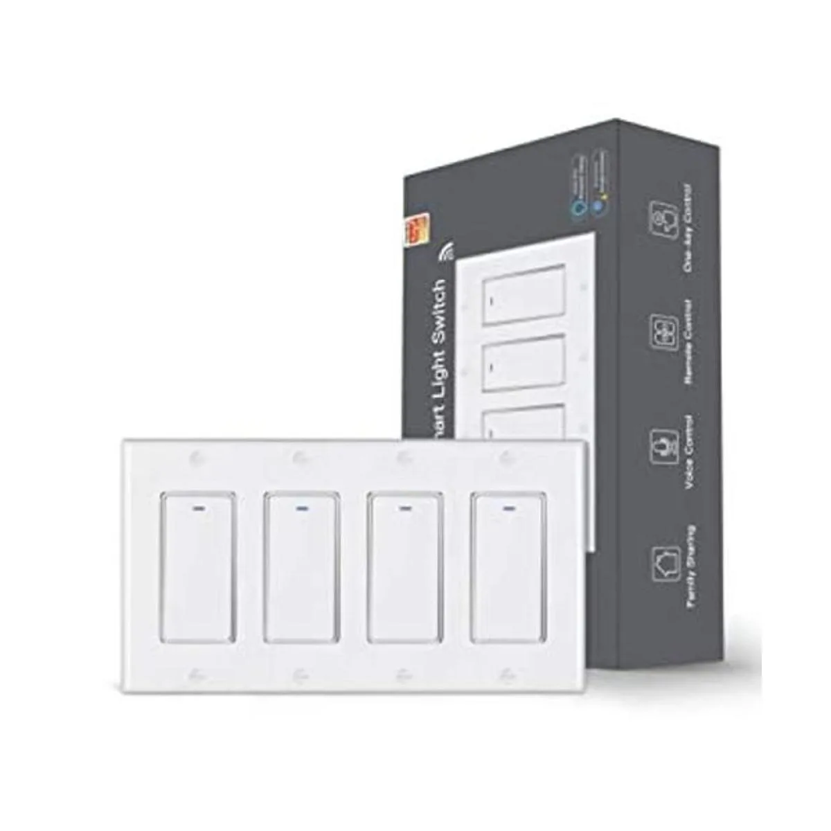 MoesGo Interruptor de luz inteligente con botón de pared, multicontrol 3 vías, interruptores de luz WiFi de 2.4 GHz, requiere cable neutro, control remoto Smart LifeTuya, funciona con Alexa, Google Home White 4 contactos