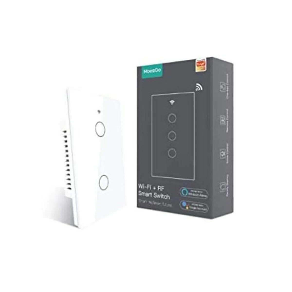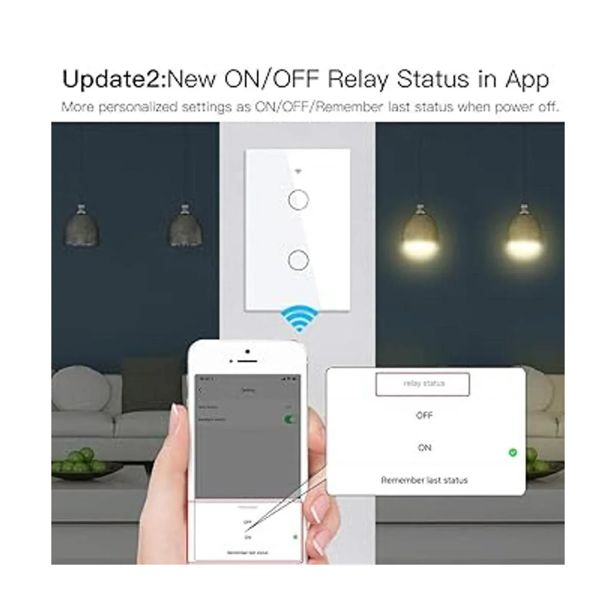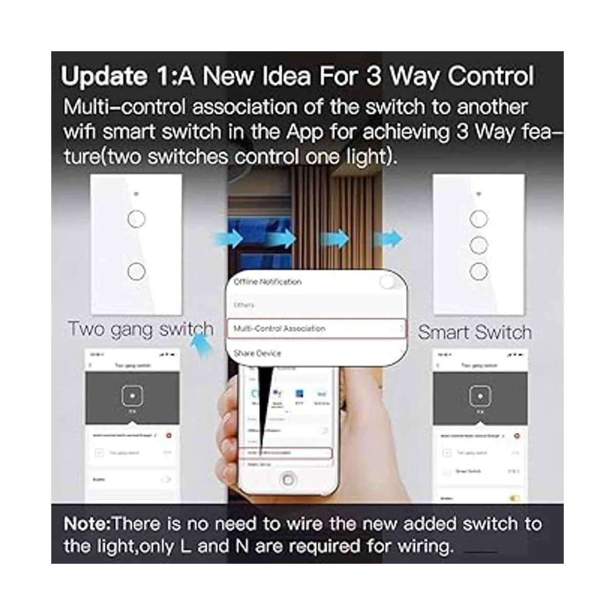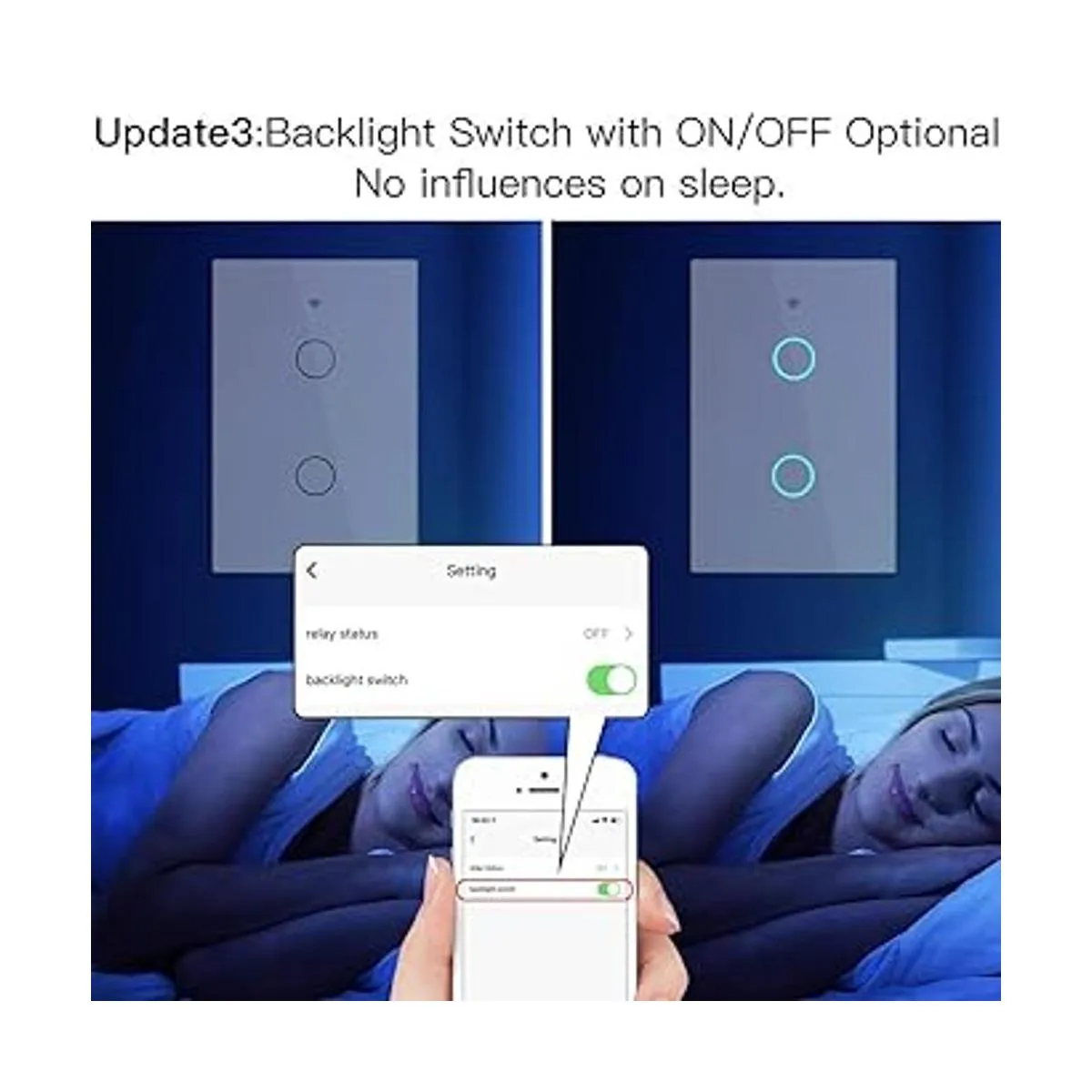 MoesGo Interruptor inteligente de luz de pared WiFi, panel de vidrio, multicontrol 3 vías, interruptores táctiles WiFi de 2.4 GHz, requiere cable neutro, aplicación inteligente de control remotoTuya, funciona con Alexa, Google Home White 2 Gang
