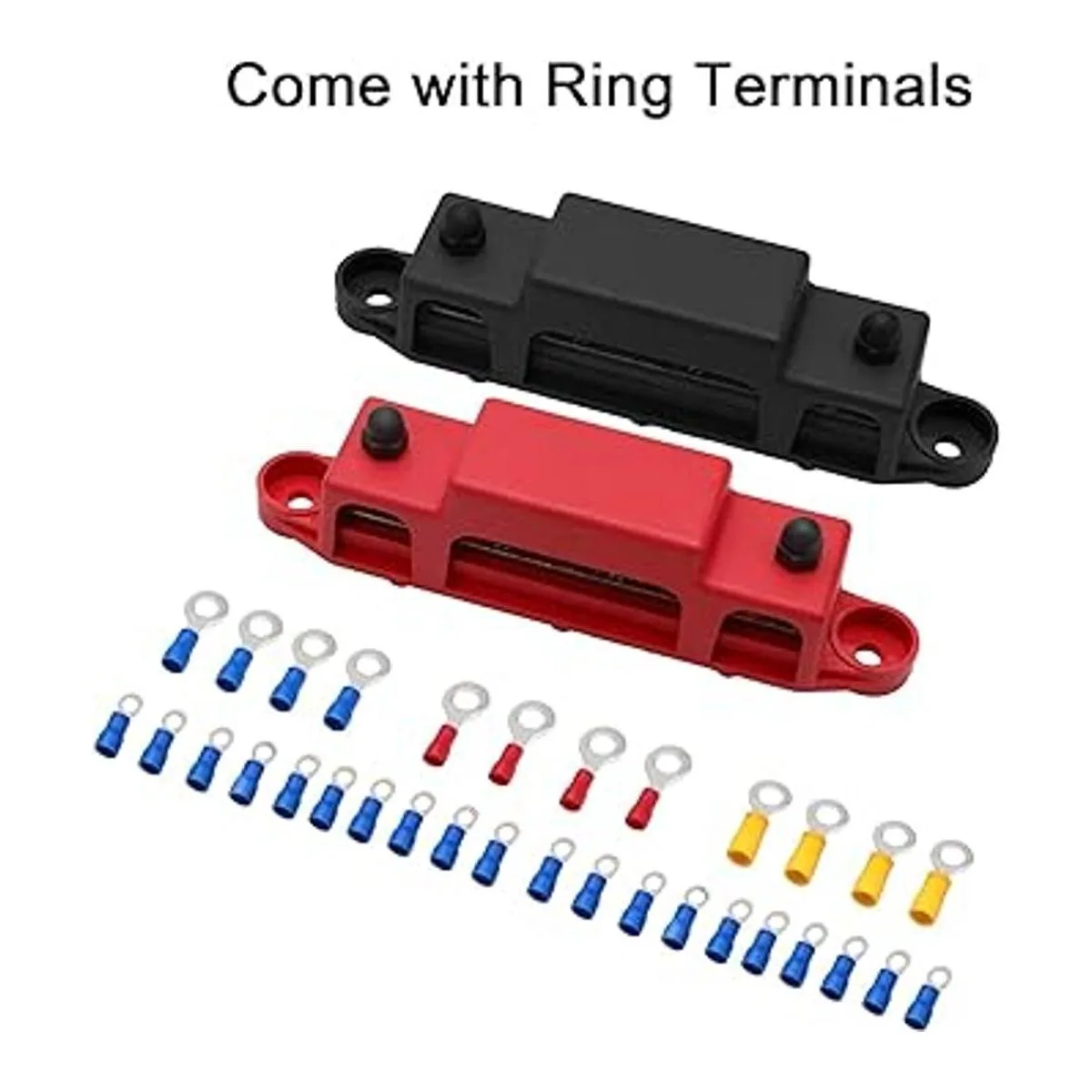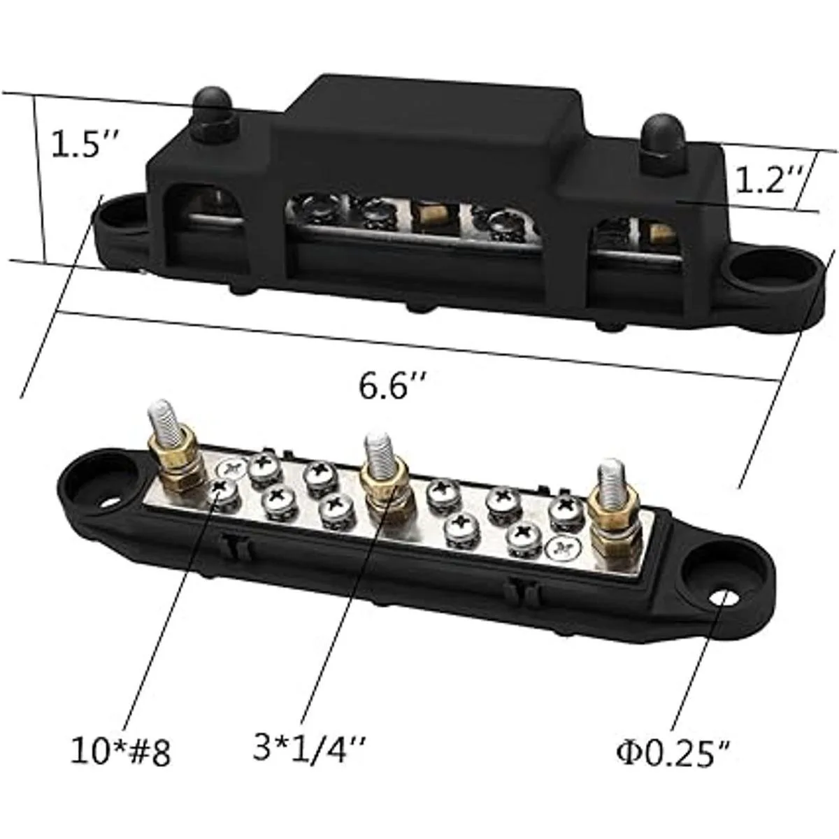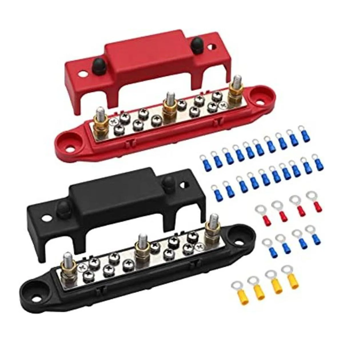 Mofeez Barra de autobús Poste de 3 x 14 pulgadas, bloque de distribución de energía de terminales de tornillo de 10 x 8 con terminales de anillo par, rojo y negro
