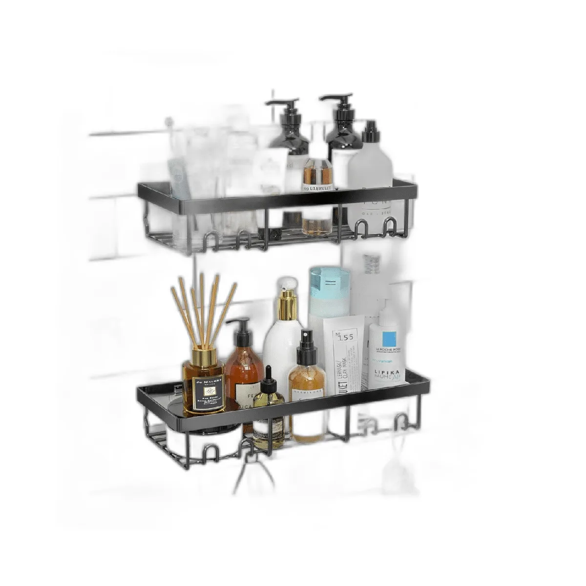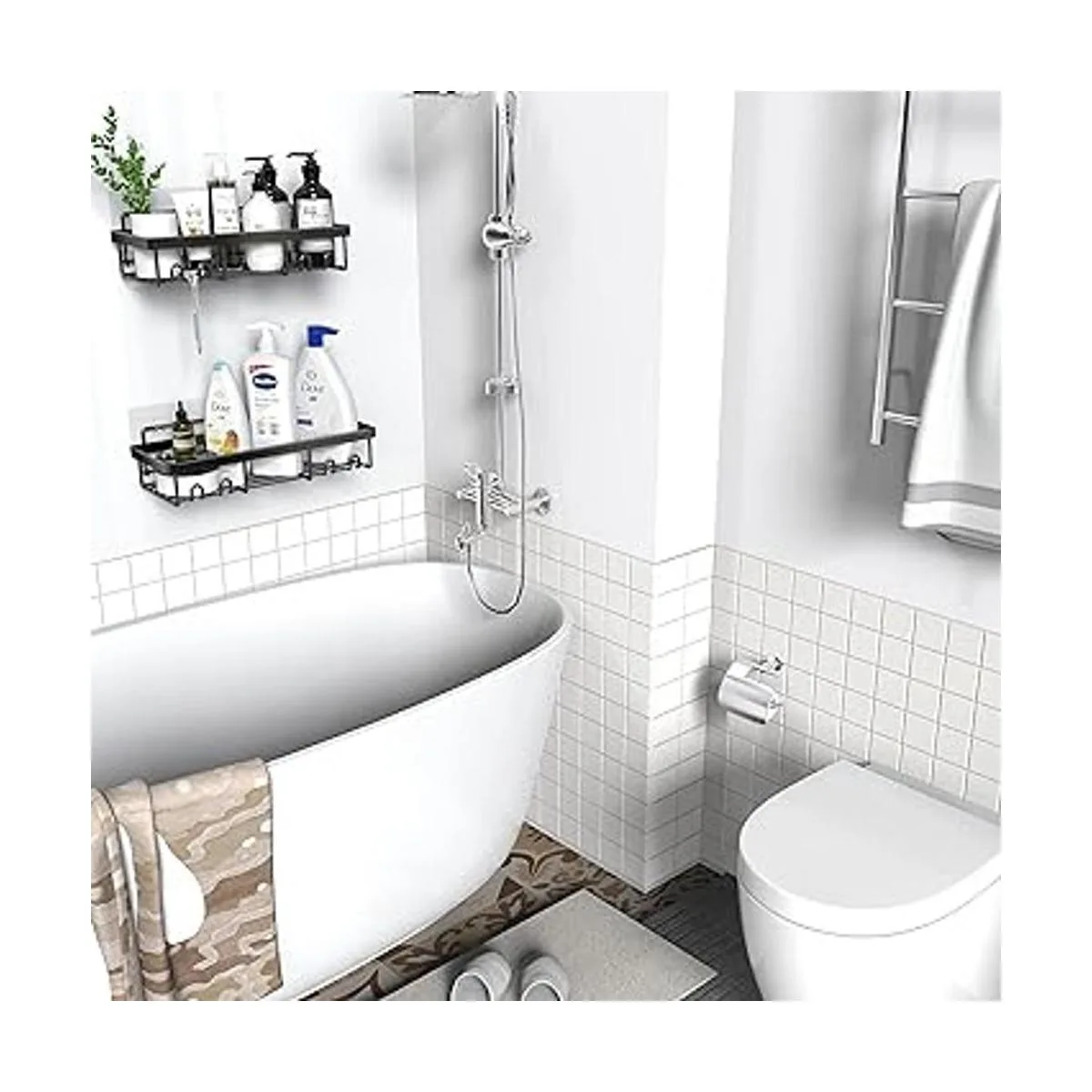 Gran juego organizador de ducha: este organizador de ducha de montaje en pared puede ayudarte a organizar mejor tus necesidades de baño. Es adecuado para baños, cocinas, caravanas, salas de estar y dormitorios, con la jabonera para hacer que tu espacio familiar se utilice al extremo. La gran capacidad de almacenamiento te permite almacenar más artículos, y la valla evita que los artículos se caigan.