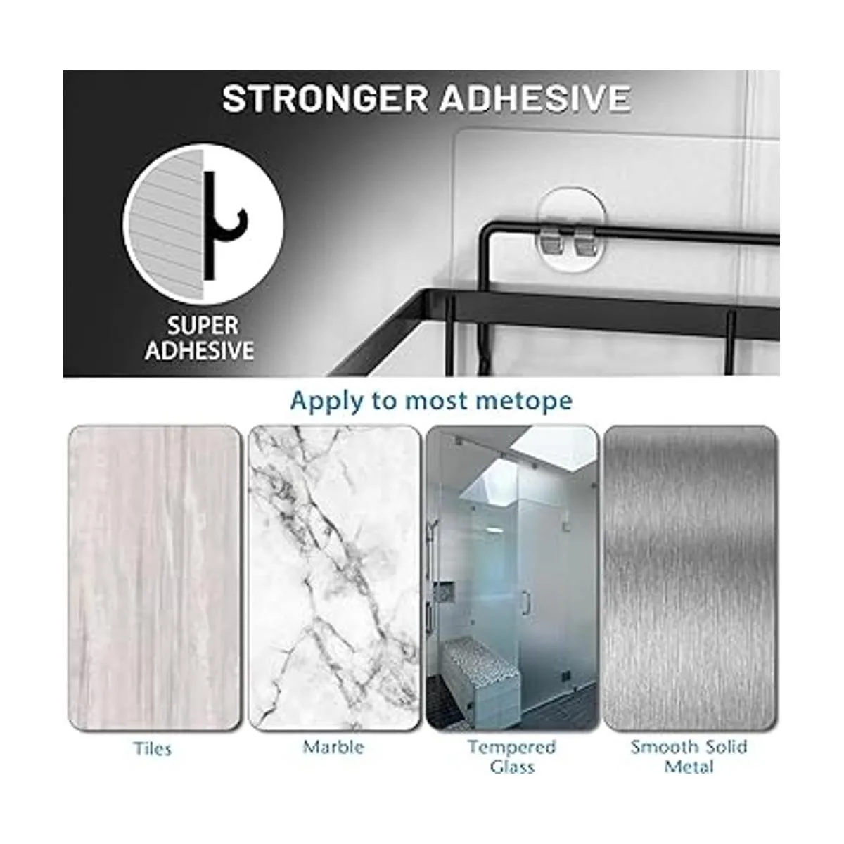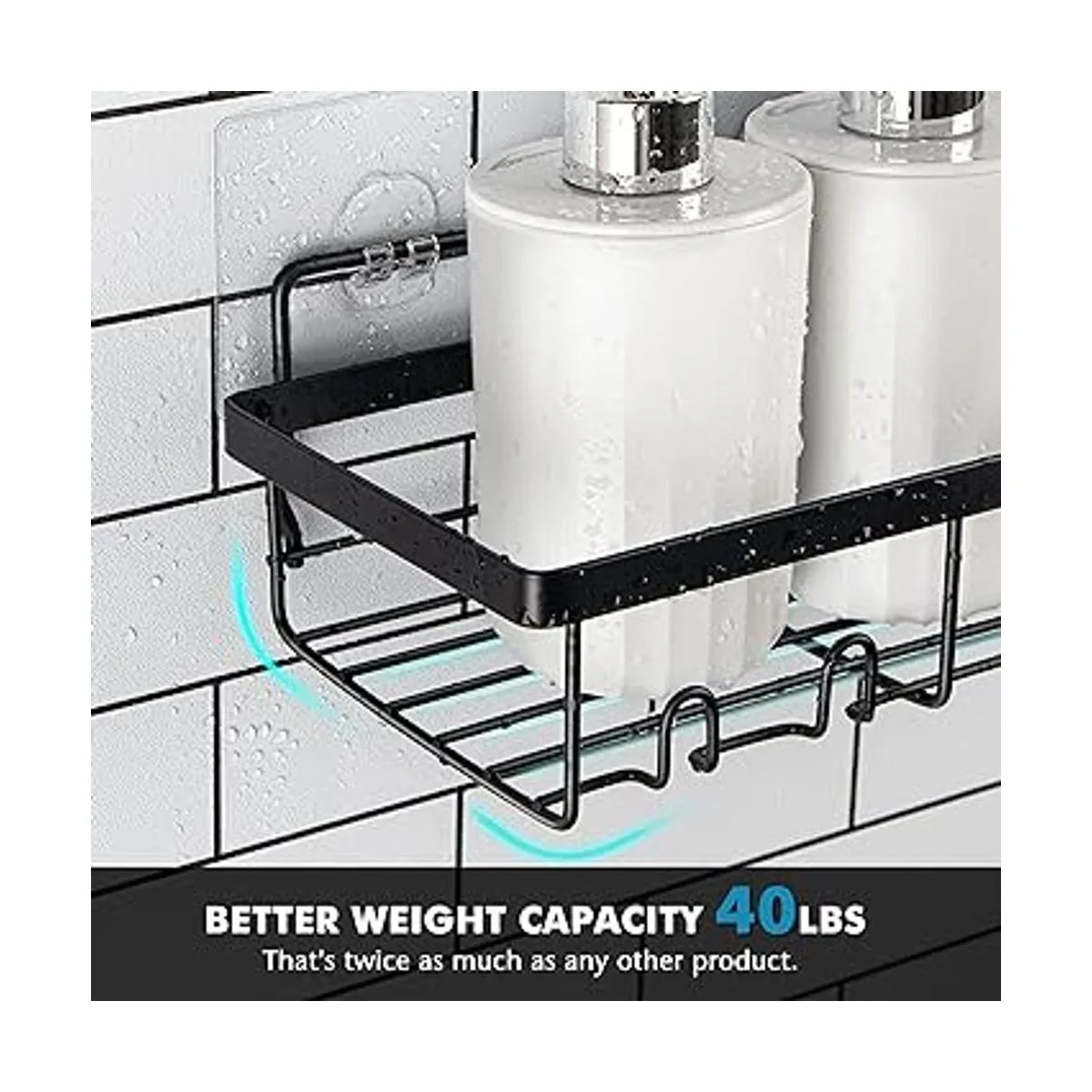 Adhesivo más fuerte: la versión mejorada del adhesivo transparente que no deja marcas te proporciona una estabilidad más fuerte. Se puede instalar sin taladrar. La capacidad de carga puede alcanzar hasta 40 libras, que es el doble de la de otros productos en el mercado. Dado que no se caerá de tu pared, no tienes que preocuparte por la pérdida causada por que el organizador de ducha se caiga después de la instalación.