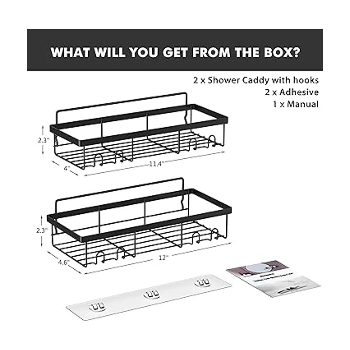 Qué obtendrás 2 organizadores de ducha con ganchos, 2 adhesivos, 1 manual idioma español no garantizado. Ofrecemos una oportunidad de reemplazar el adhesivo dentro de los 3 meses después de comprar los organizadores de ducha Moforoco.