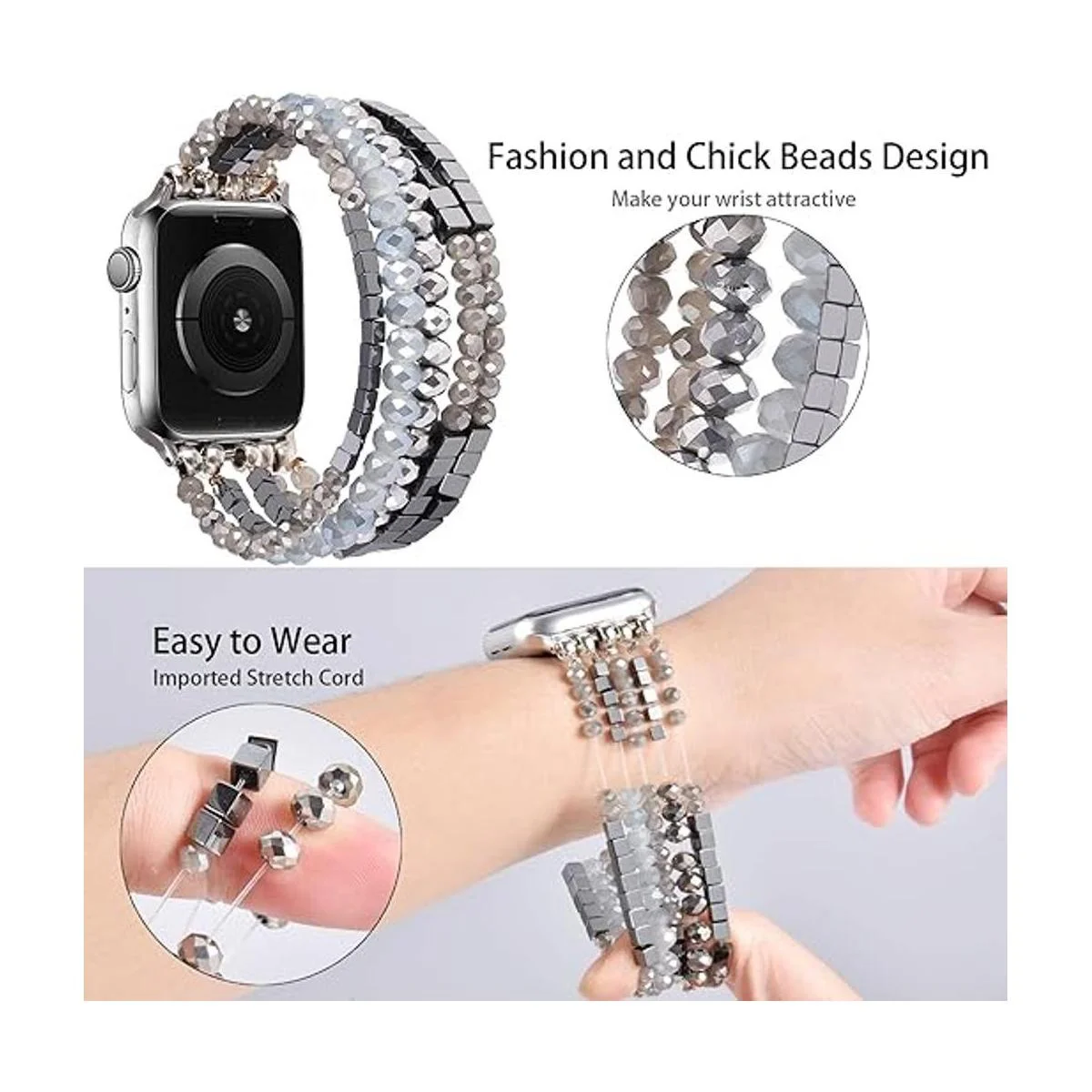 MOFREE Correa elástica con cuentas compatible con Apple Watch de 1.611.57 pulgadas, serie 7 SE, 654 para mujer, compatible con iPhone Watch Band iWatch de 1.73 pulgadas, Series 321 Linda