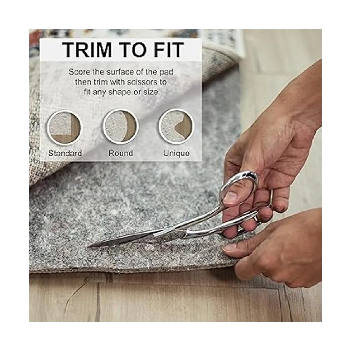 Tamaño versátil: Disponible en una variedad de tamaños de alfombras populares ,como 2 x 8 pies, 8 x 10 pies y 5 x 8 pies, esta almohadilla para alfombra también se puede personalizar usando tijeras para adaptarse a cualquier tamaño intermedio cortando 2 pulgadas menos que el tamaño de la alfombra. 1 a 2 pulgadas más corta que el perímetro de la alfombra.