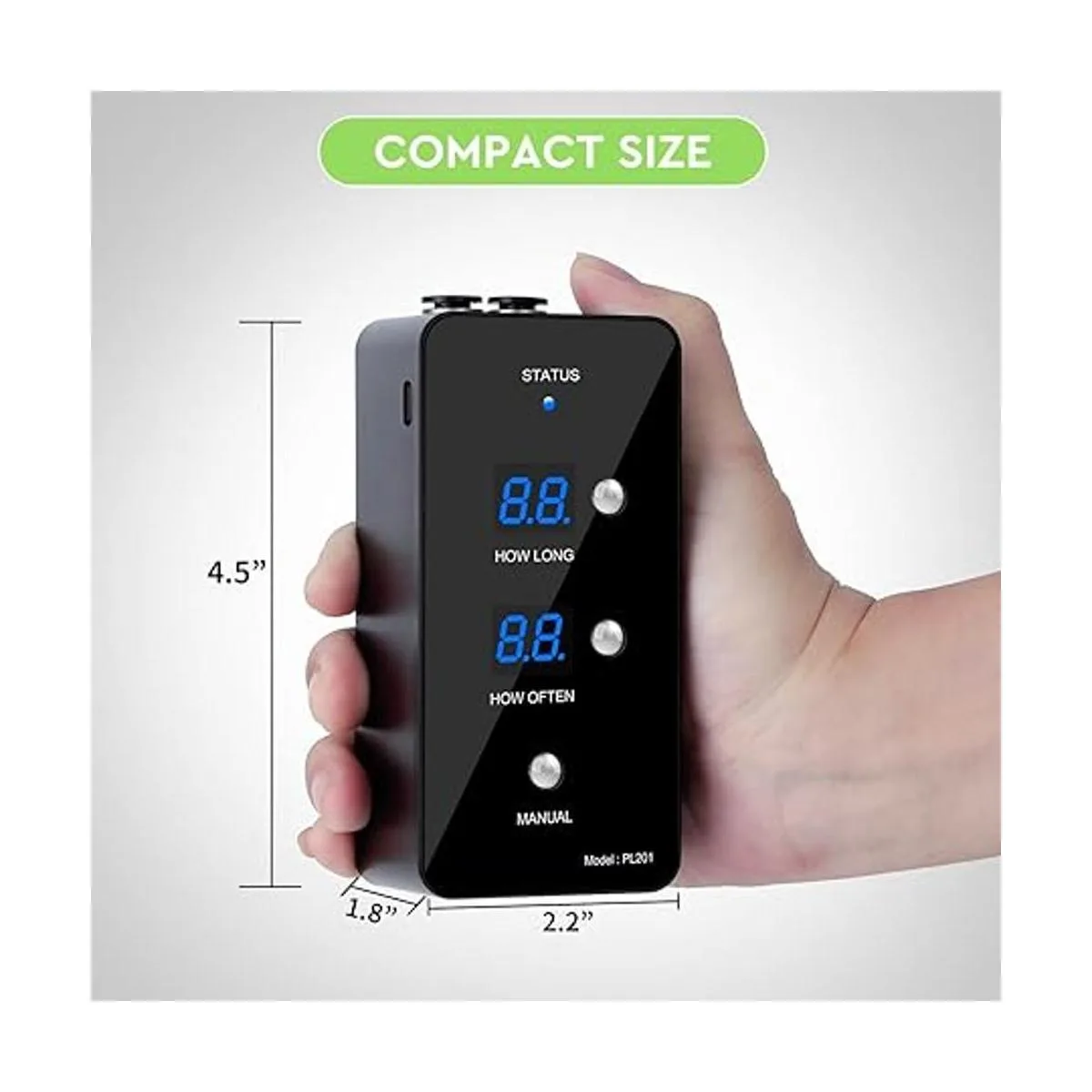 Función de temporizador: solo 3 botones para configurar, y puedes configurar un temporizador de hasta 15 minutos de tiempo de pulverización y frecuencia de niebla de 1 hora a 30 días. No te preocupes por tus mascotas cuando salgas durante días.