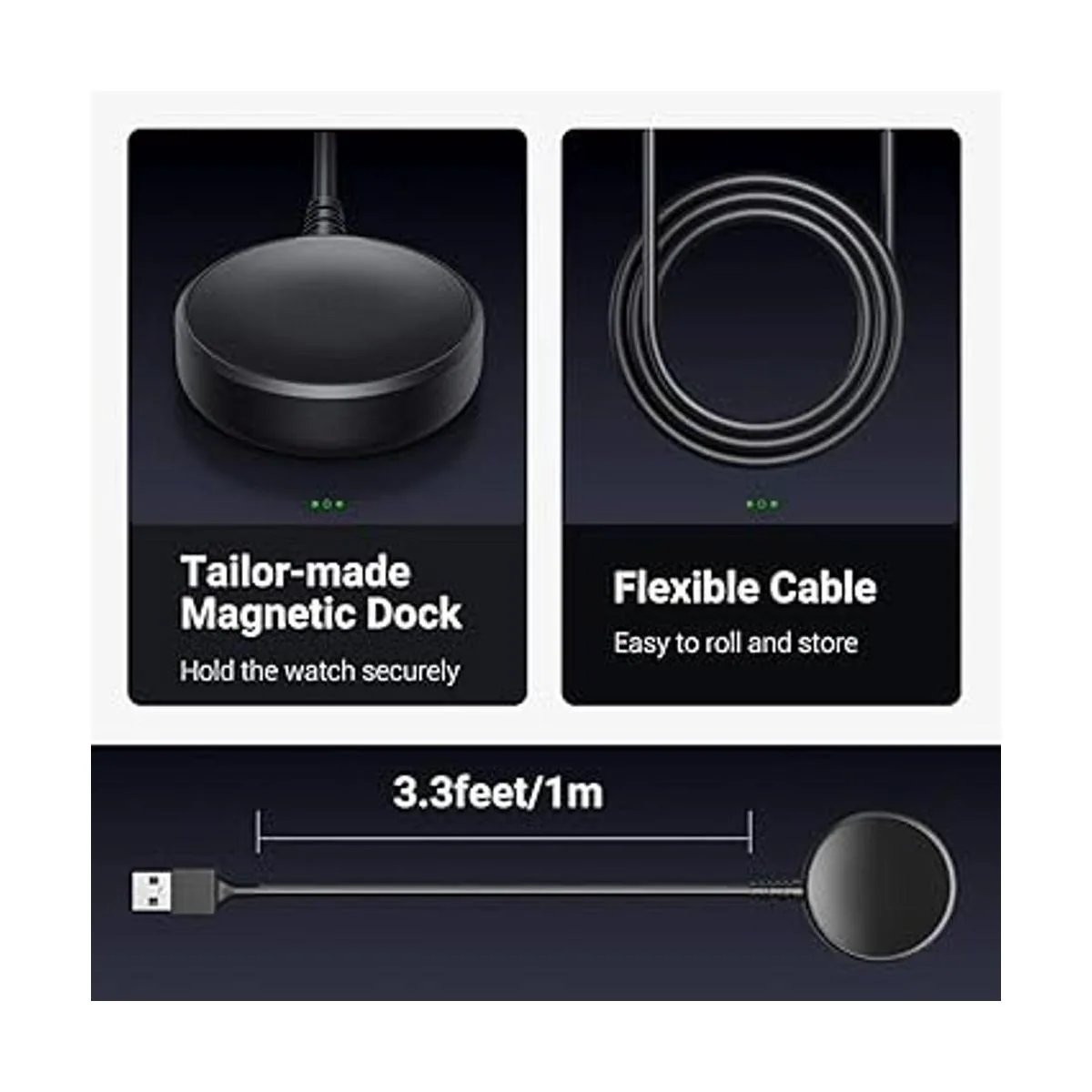 MoKo Base de carga compatible con Samsung Galaxy Watch 4,4 ClassicGalaxy Watch 3 de 1.57 pulgadas, 1.61 pulgadas, Galaxy Watch Active, Active 2 de 1.73 pulgadas, 1.73 pulgadas, cable de carga adaptador de repuesto Negro