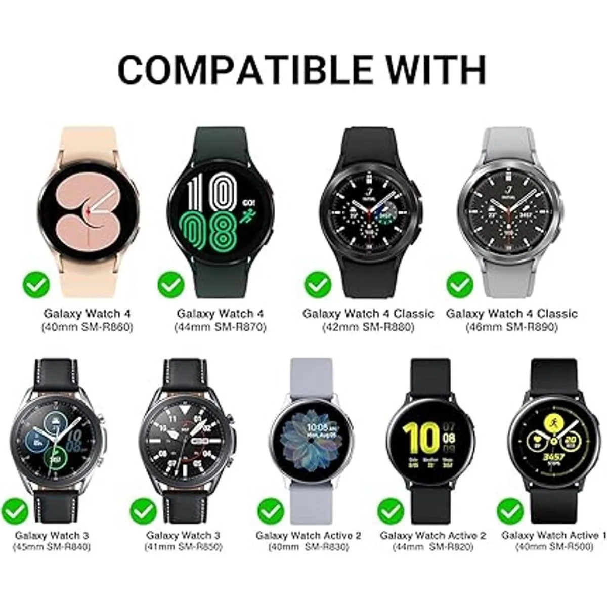 Compatibilidad perfecta: perfectamente diseñado para tu precioso Samsung Galaxy Watch 4 de 1.575 in SMR860, Galaxy Watch 4 de 1.732 in SMR870, Galaxy Watch 4 Classic de 1.654 in SMR880, Galaxy Watch 4 Classic de 1.811 in SMR890, Galaxy Watch 3 de 1.772 in SMR840, Galaxy Watch 3 de 1.614 in SMR85 mm SMR850, Galaxy Watch Active 250, Galaxy Watch SM1.732 in. R820, Galaxy Watch Active 2 1.575 in SMR830, Galaxy Watch Active 1 1.575 in SMR500. Nota: el reloj Samsung es solo para ilustración y no está incluido.