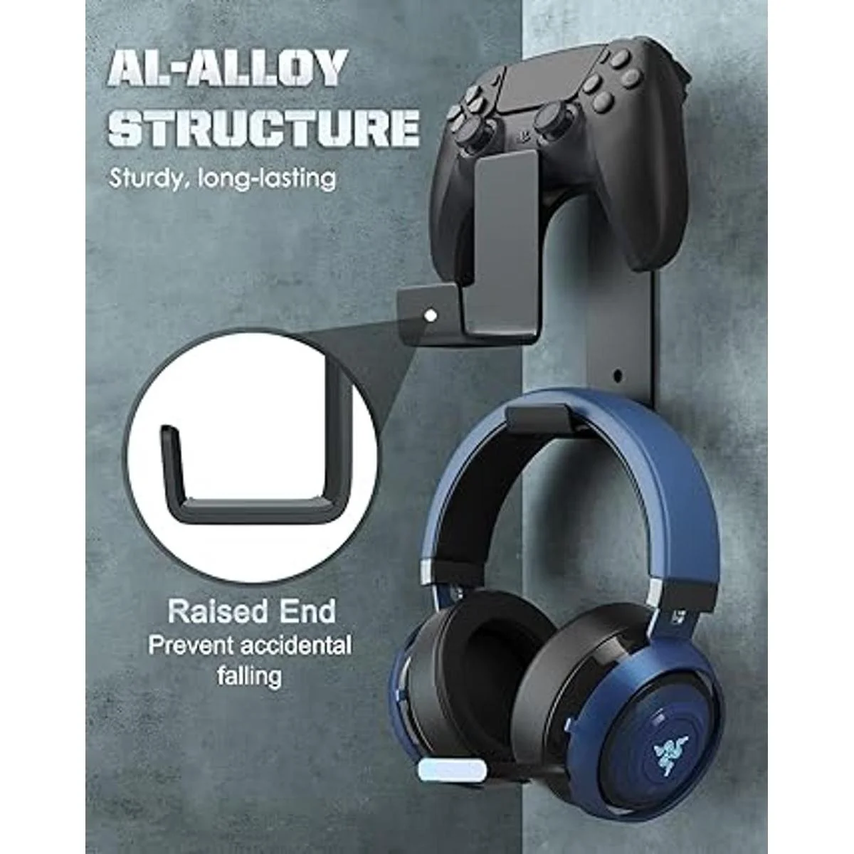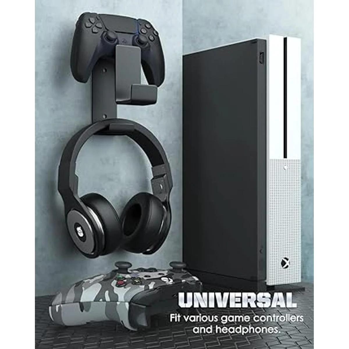 MoKo Soporte para controlador, controlador dual de Gamepad y colgador de auriculares para Xbox One, Xbox 360, PS3, PS4, PS5, PC, STEAM, Switch, soporte de pared para todos los auriculares universales, negro