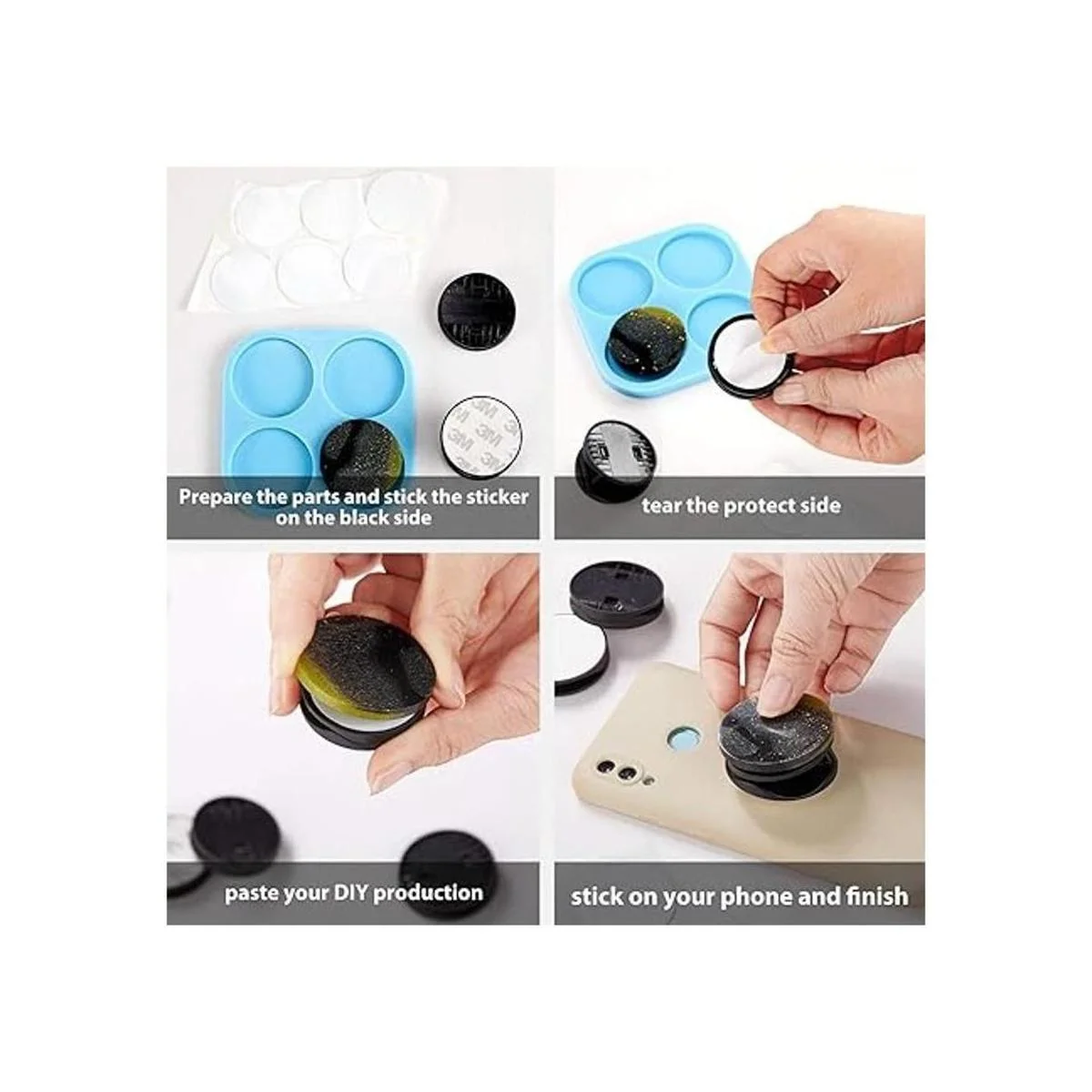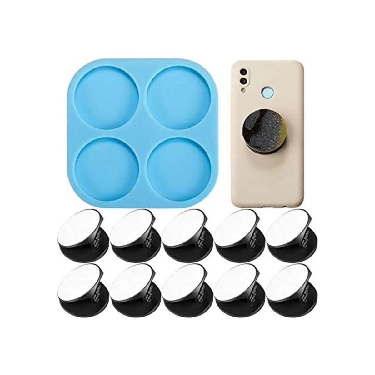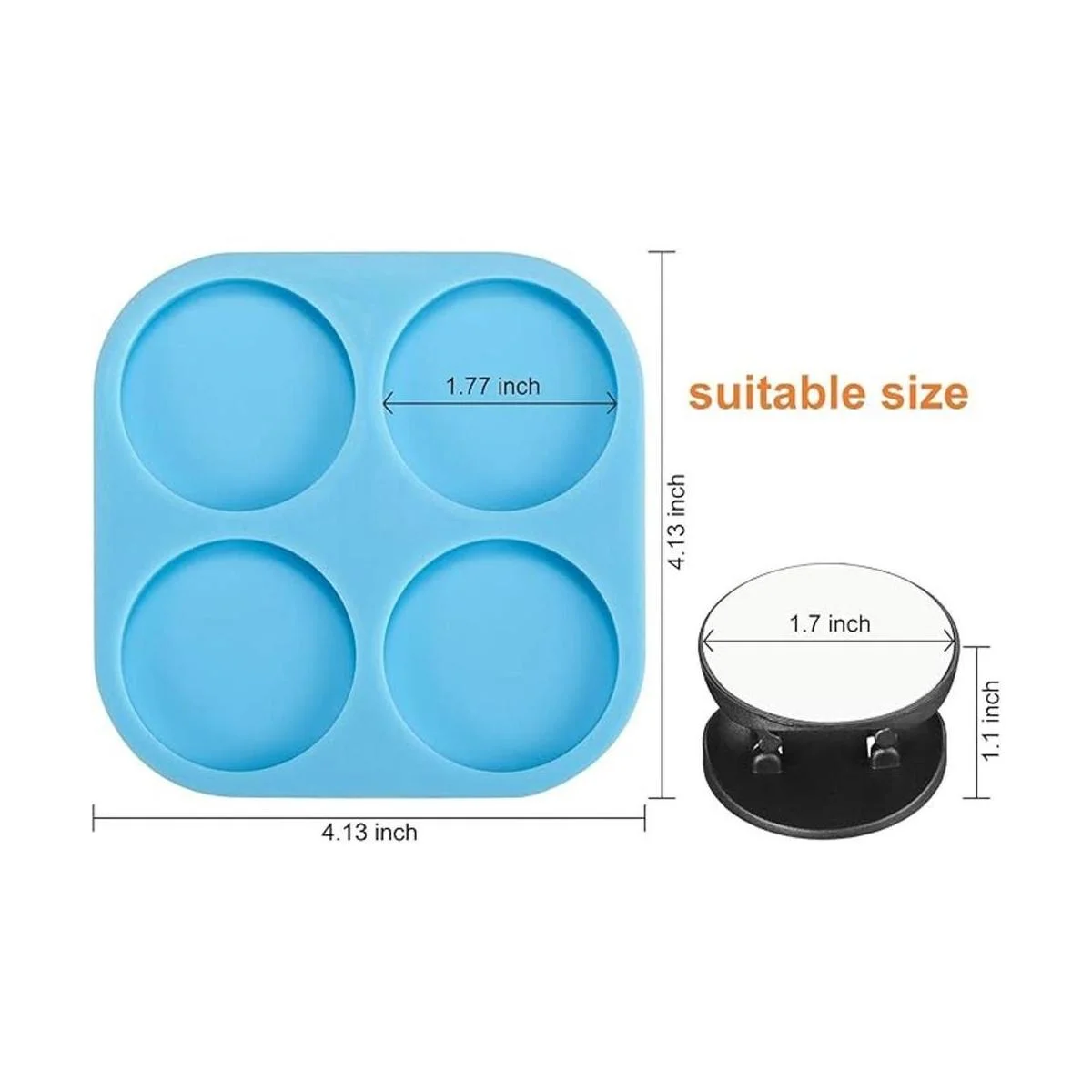 Molde de agarre para teléfono, 4 círculos de resina epoxi en la parte superior del teléfono, con 10 soportes de sublimación en blanco, moldes de silicona circulares para diseño de bricolaje soporte negro
