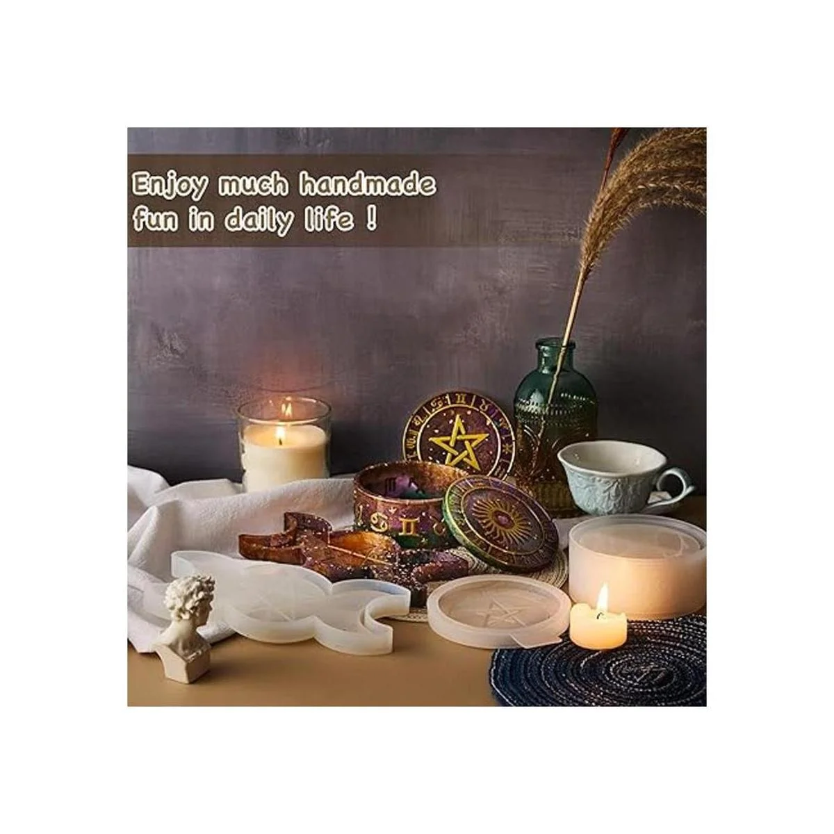 Hazlo tú mismo como quieras: puedes diseñar el molde de bandeja de platos de triple luna y 12 moldes de caja de carteles con tus propios estilos, para añadir algunas lentejuelas, flores secas, cuentas, tintes de resina y otras decoraciones que quieras en el molde, luego obtén una artesanía con aspecto bonito, simplemente desarrolla tu imaginación y disfruta de mucha diversión hecha a mano en la vida diaria