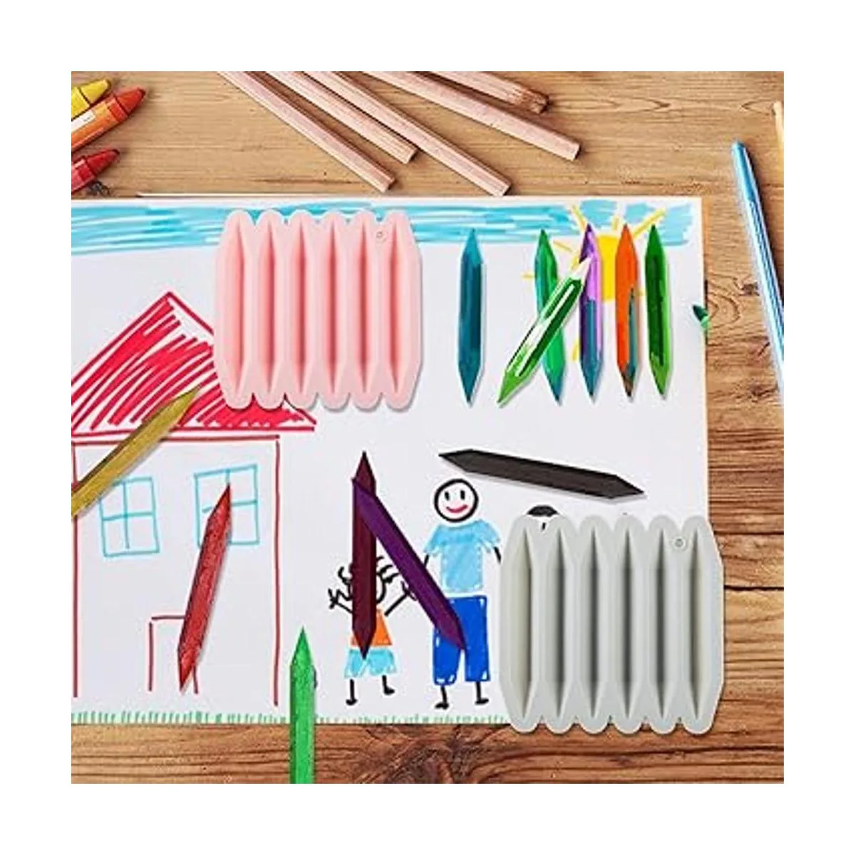 Molde de crayón, 2 piezas, molde de reciclaje, cavidad, doble punta, 3D, moldes de crayón derretidos, de silicona pura, seguro para horno, molde en forma de crayón, reutilizable, duradero, moldes de crayón triangular para hacer bricolaje rosa gris