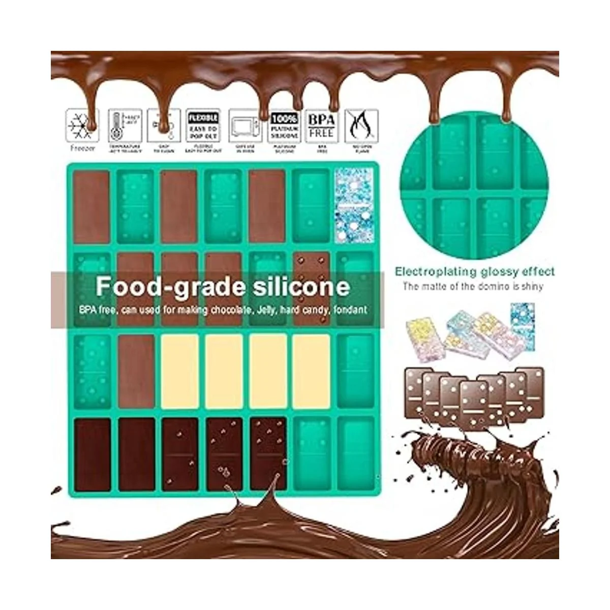 Molde de silicona dominó de resina brillante: el juego de moldes de resina está hecho de silicona de grado alimenticio de alta calidad con superficie interior brillante, sin revestimientos químicos, sin BPA, PVC y ftalatos. La superficie del molde de dominó es brillante y no tiene arañazos. Ideal para fundir resina epoxi y resina UV.