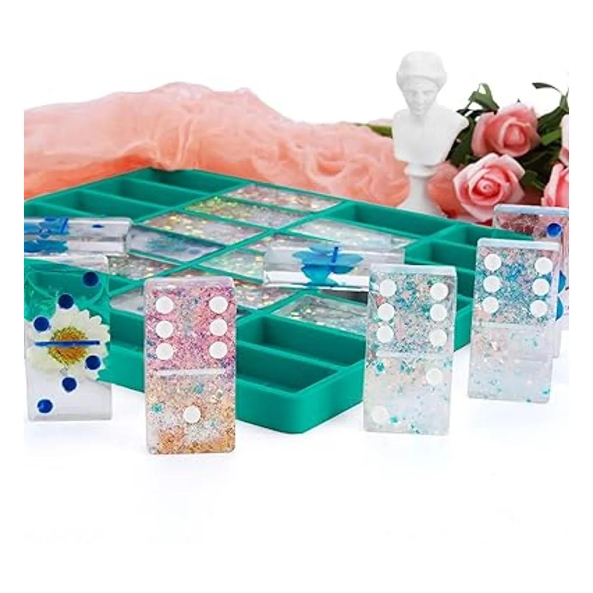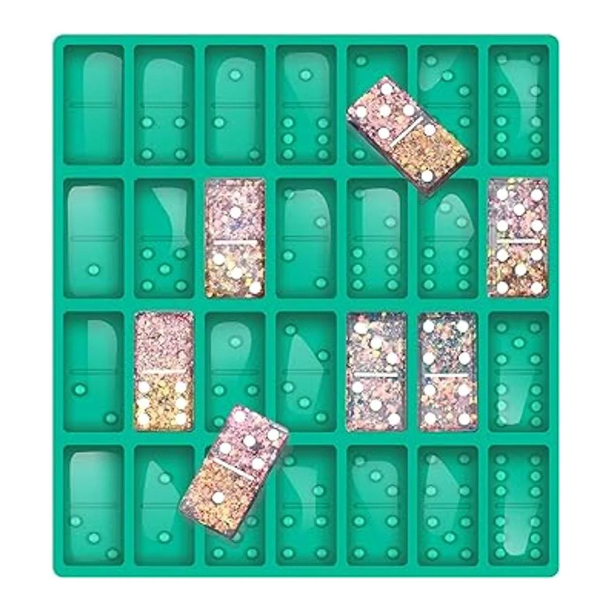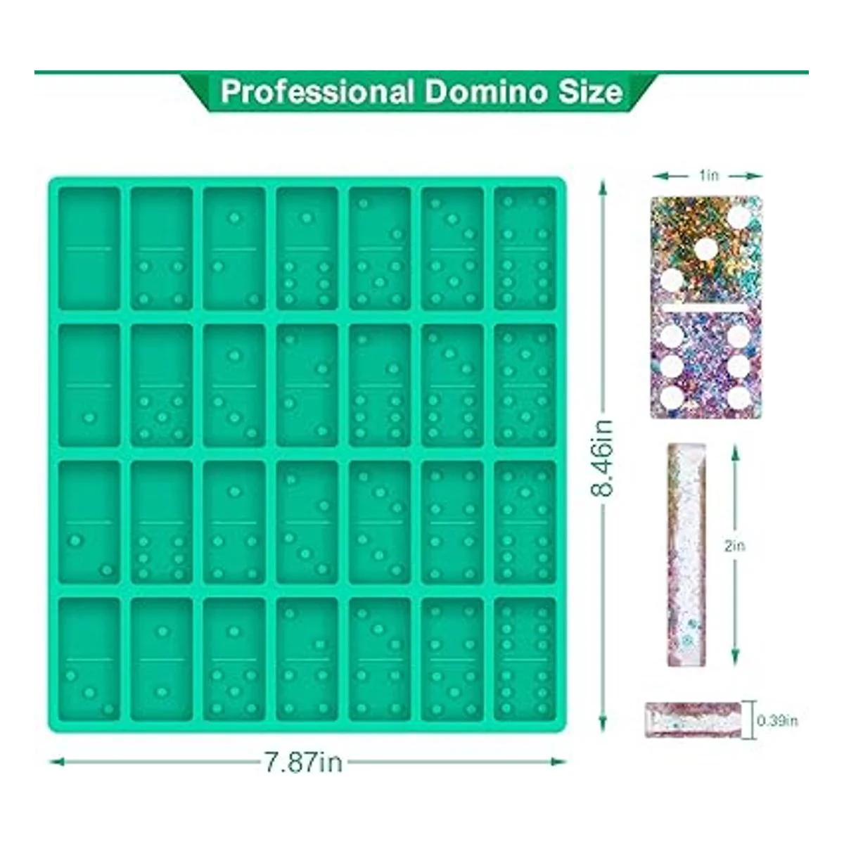 Molde de dominó para fundición de resina, 28 cavidades dobles 6 dominó molde, molde jumbo dominó para resina, bricolaje, brillante y sin arañazos y duradero, 8.86 x 9.25 x 0.39 pulgadas, 8.11 oz nueva versión