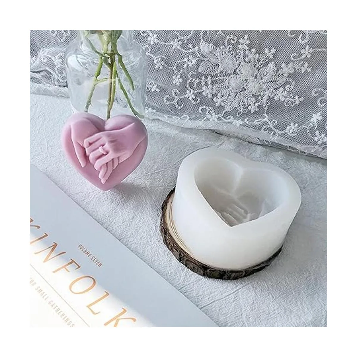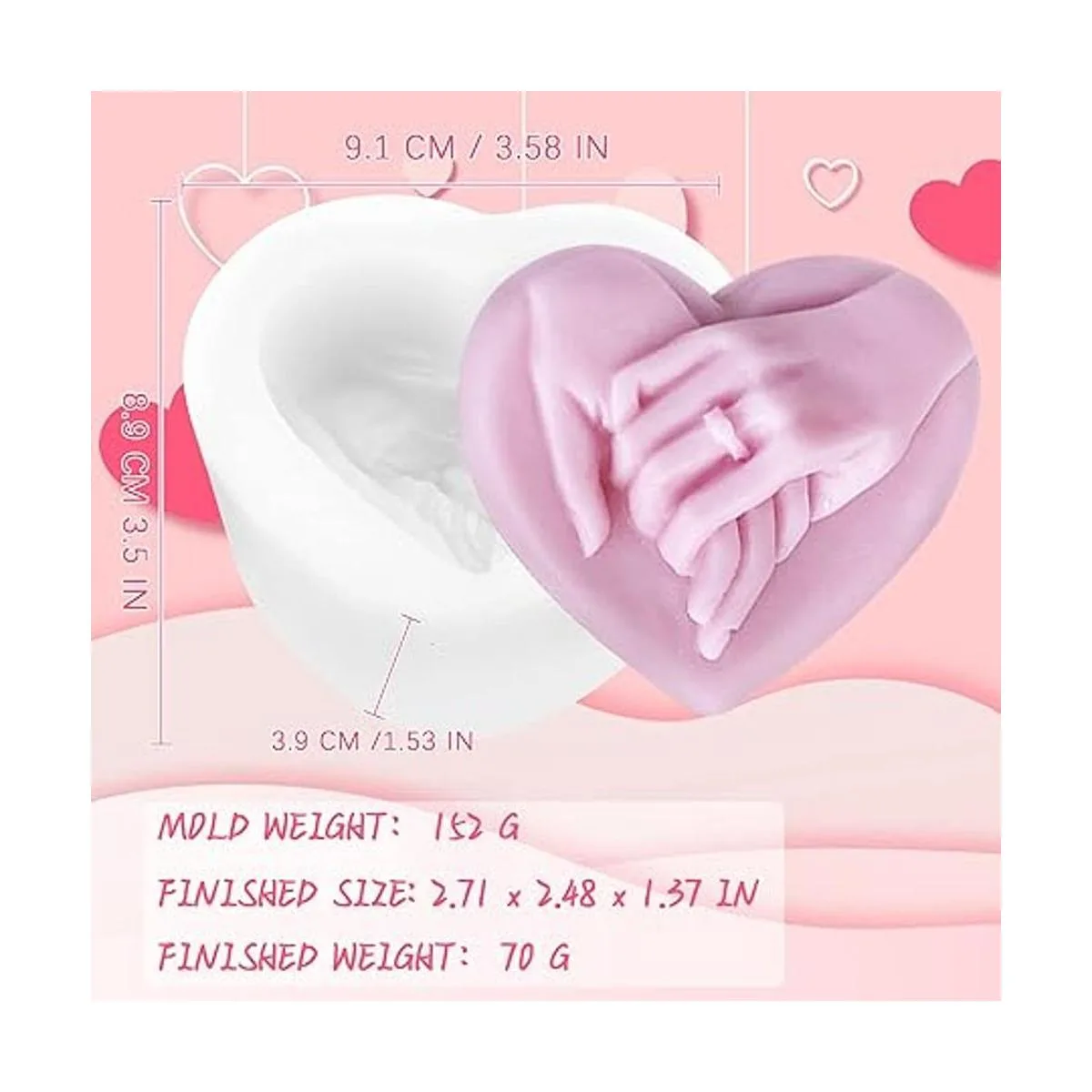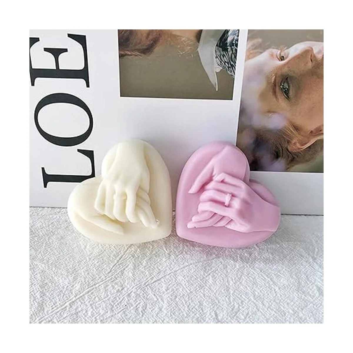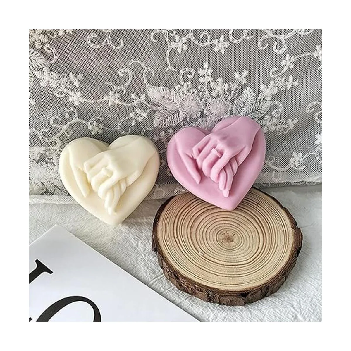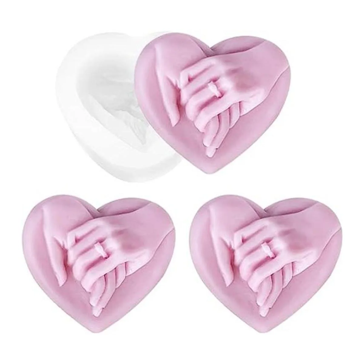 Molde de jabón de mano a mano, molde de resina de silicona de corazón para bricolaje en el día de San Valentín, fabricación de velas, arcilla polimérica, yeso artesanal
