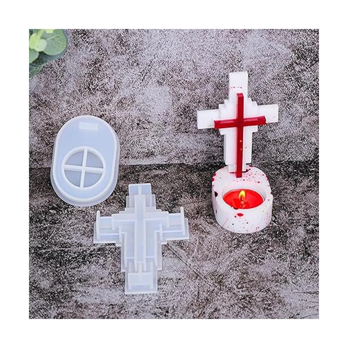Molde de resina Jesús Cross con base de silicona para velas de fundición de resina epoxi con base para fundición de resina epoxi y decoración del hogar, transparente