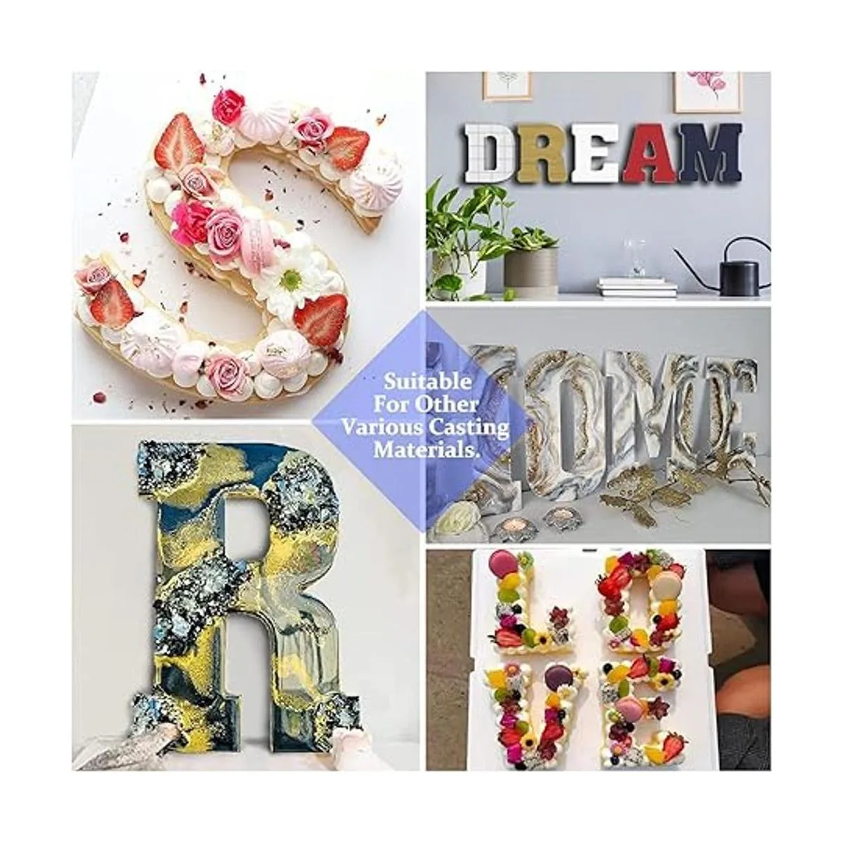 Ampliamente utilizado y varias palabras: los moldes de resina con forma de letra grande están diseñados para hacer la creación del alfabeto de bricolaje, puedes elegir cualquier letra para formar todas las palabras como amor, hogar, o casate conmigo, etc. De acuerdo a las necesidades de tus hijos, amigos, familiares, estudiantes, profesores y otras personas, que crean un ambiente especial y expresan tu afecto, les gustará el regalo encantador y práctico.