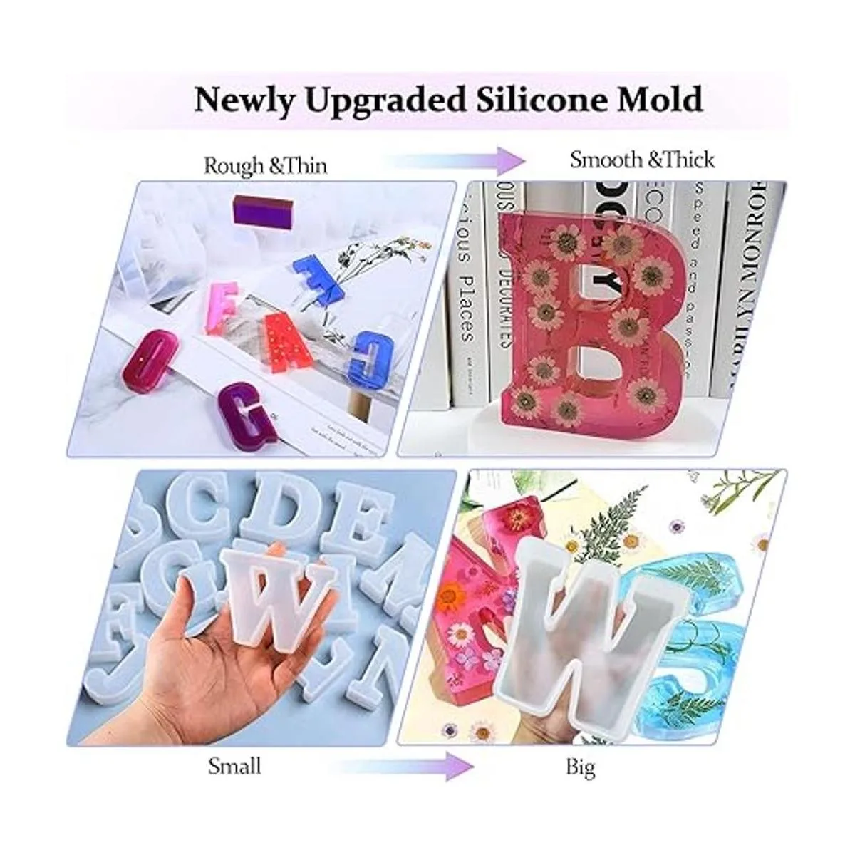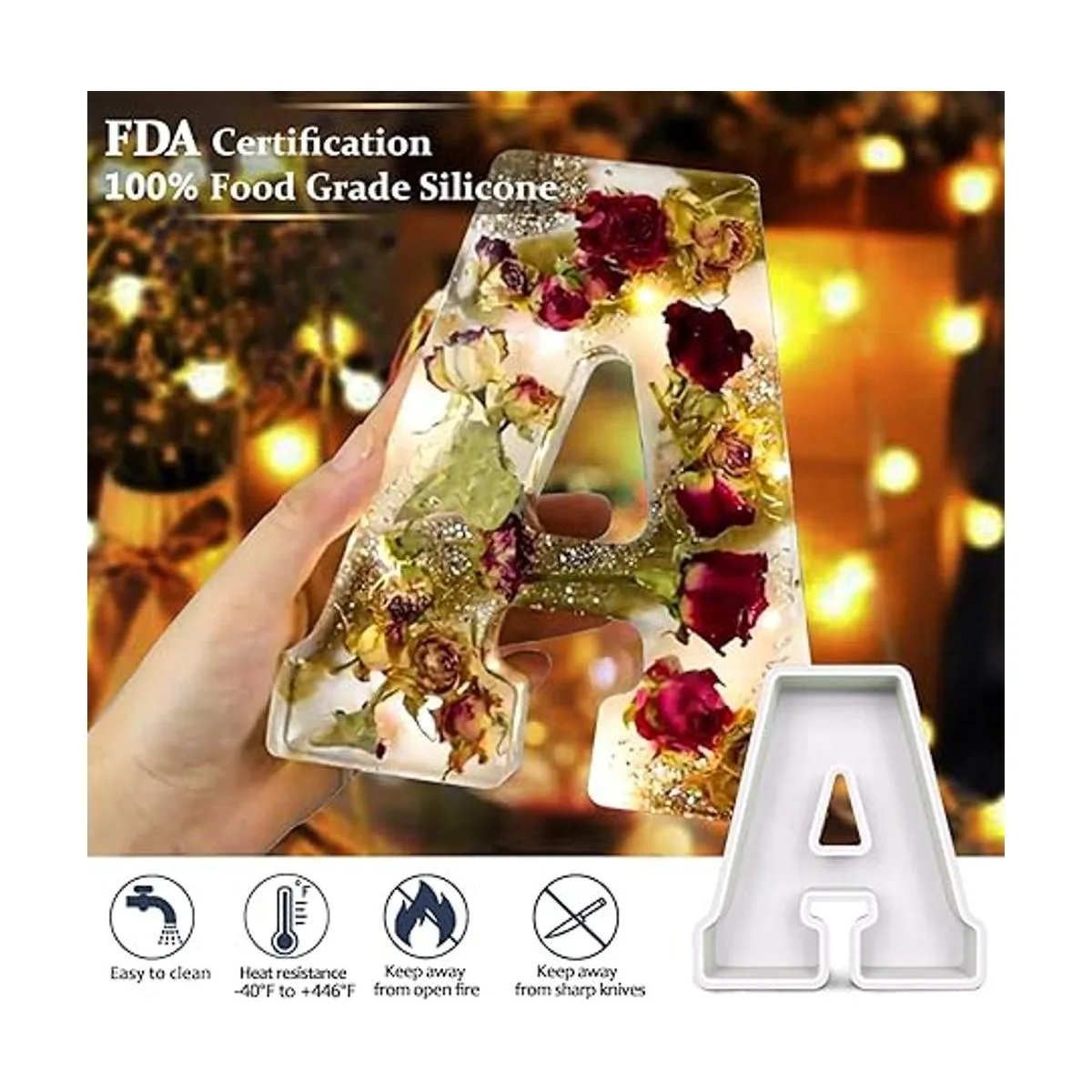 Molde de resina, moldes de silicona 3D de letra grande para fundición de resina epoxi, moldes del alfabeto de silicona para resina para arte, jabón, manualidades de arcilla, decoraciones de fiesta en el hogar, joyas, cera de velas, dulces de pastel de bricolaje