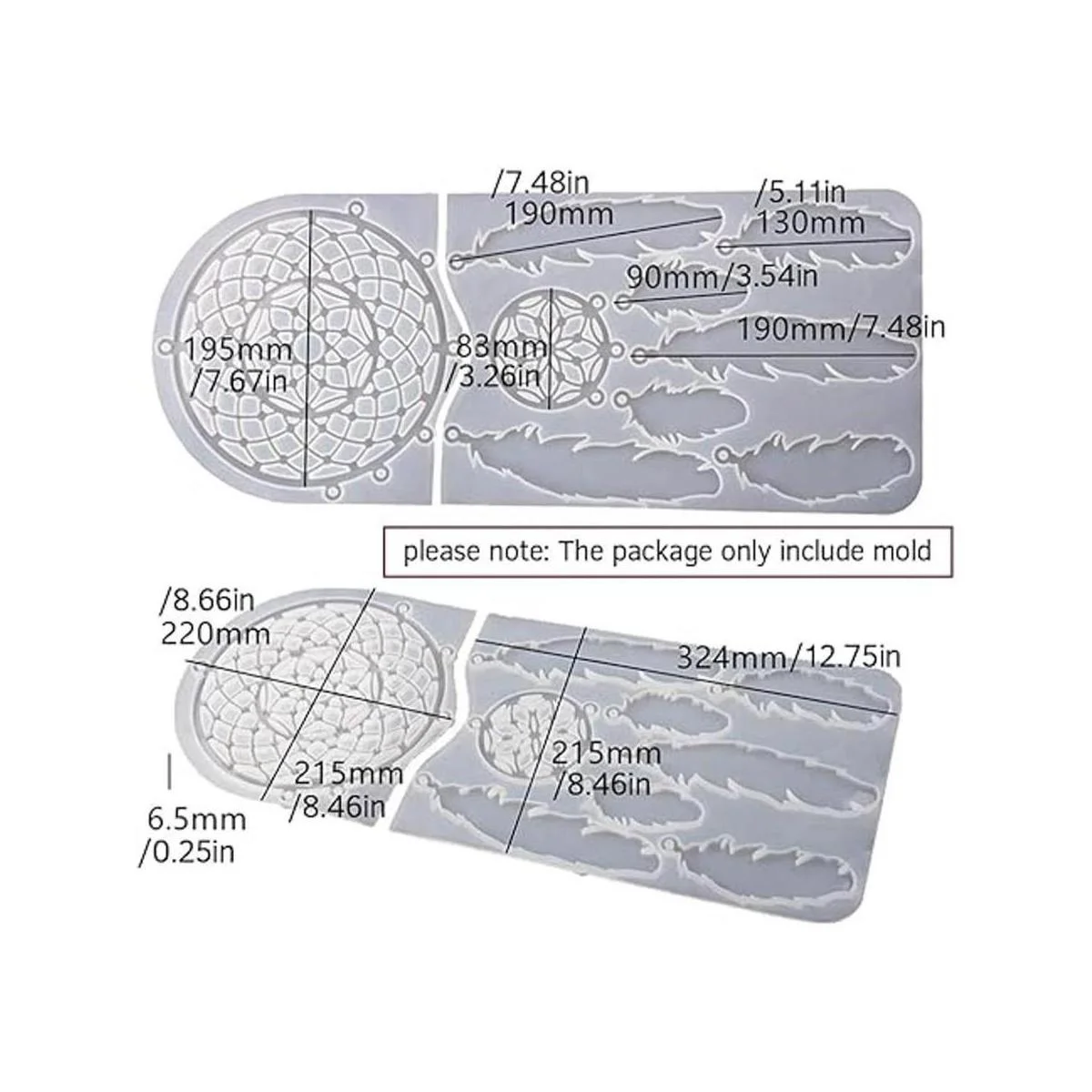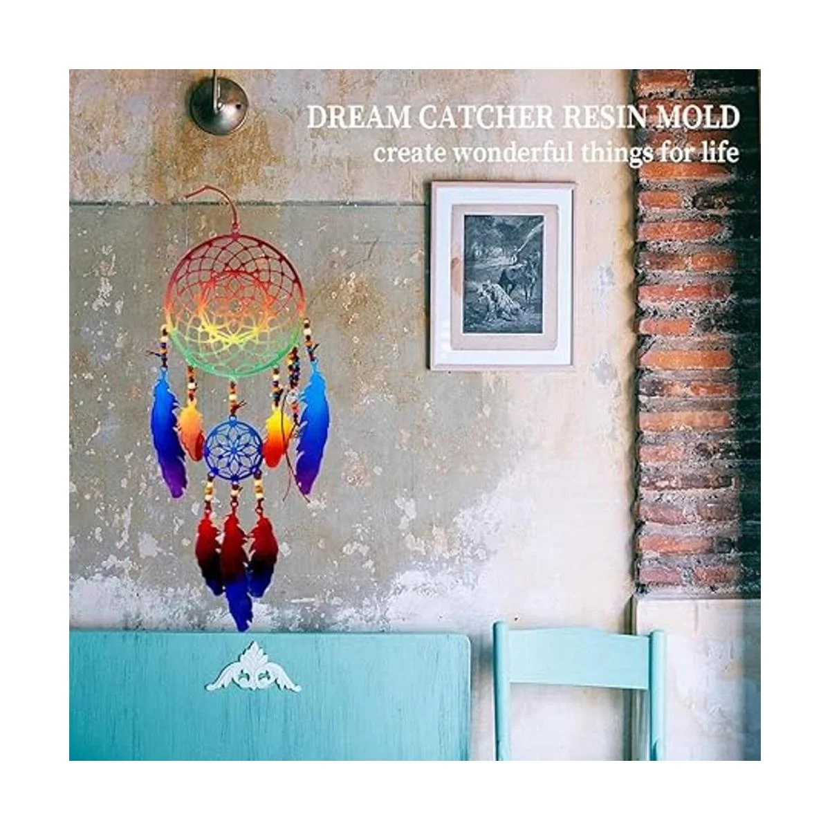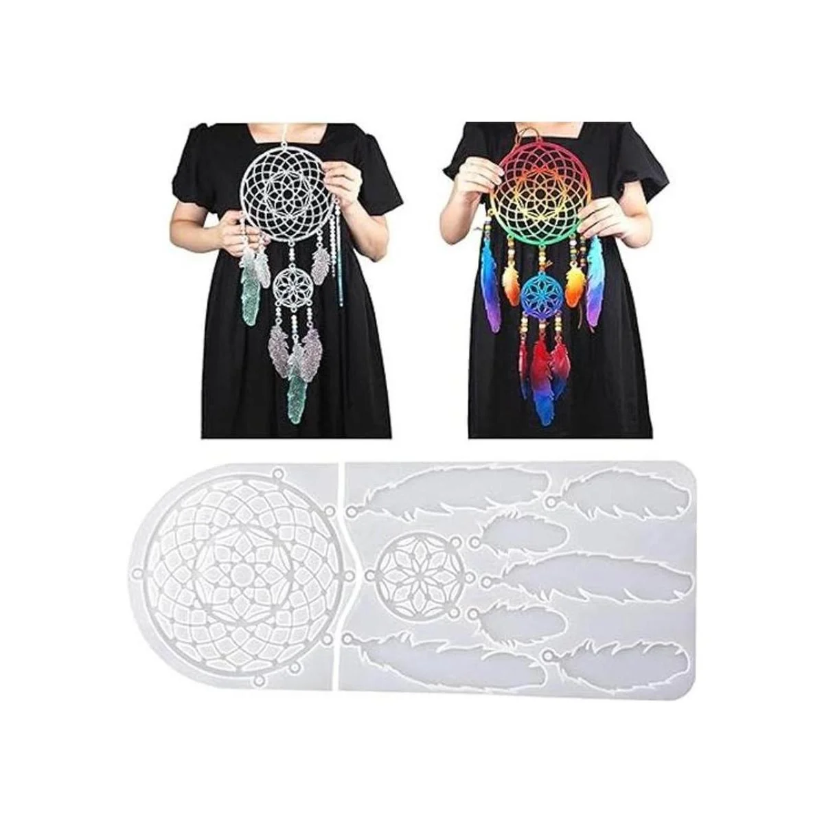 Molde de resina para atrapasueños grande, molde de silicona para atrapasueños para resina epoxi, kit de llavero colgante de plumas para colgar en la pared, molde para hacer adornos, accesorio de resina, decoración del hogar