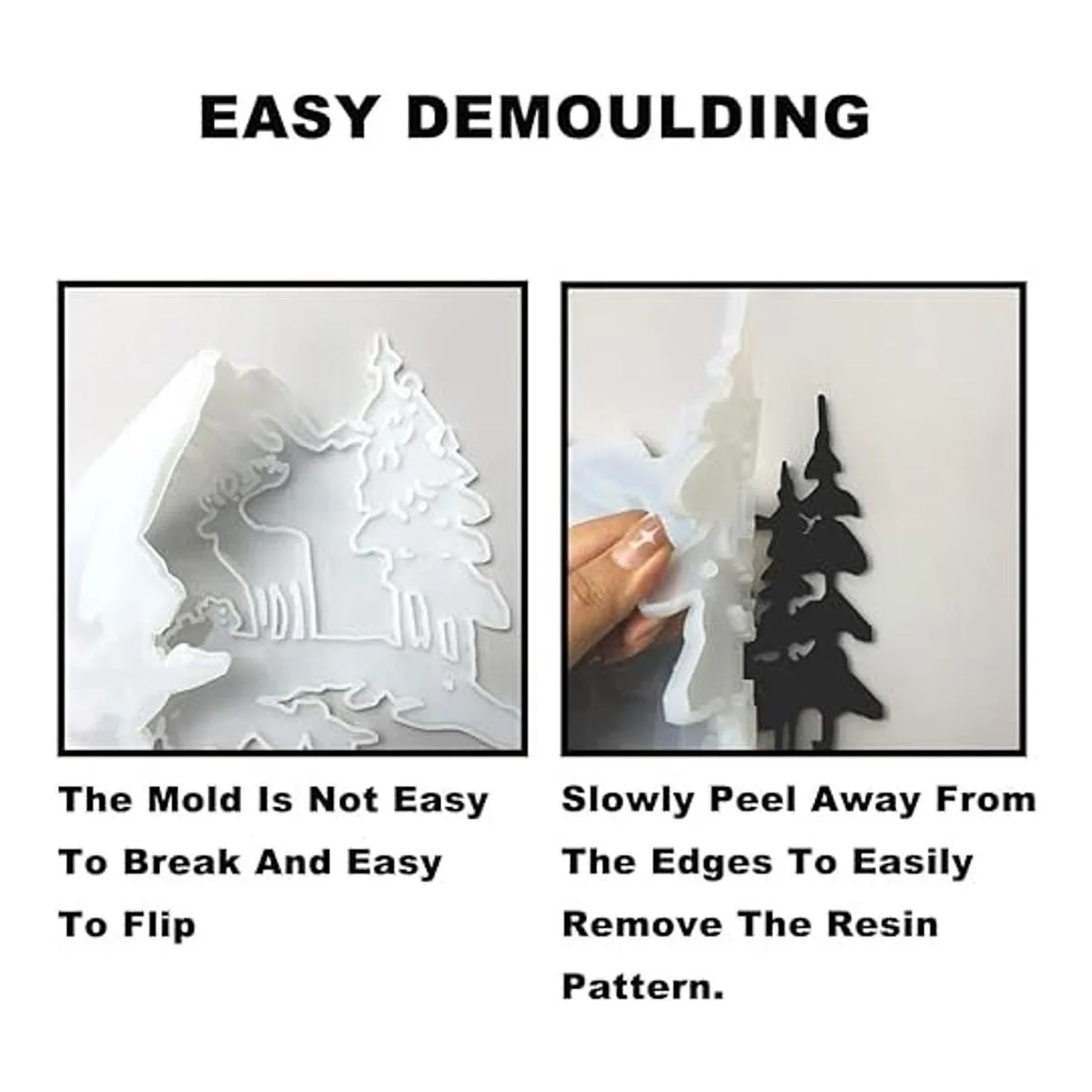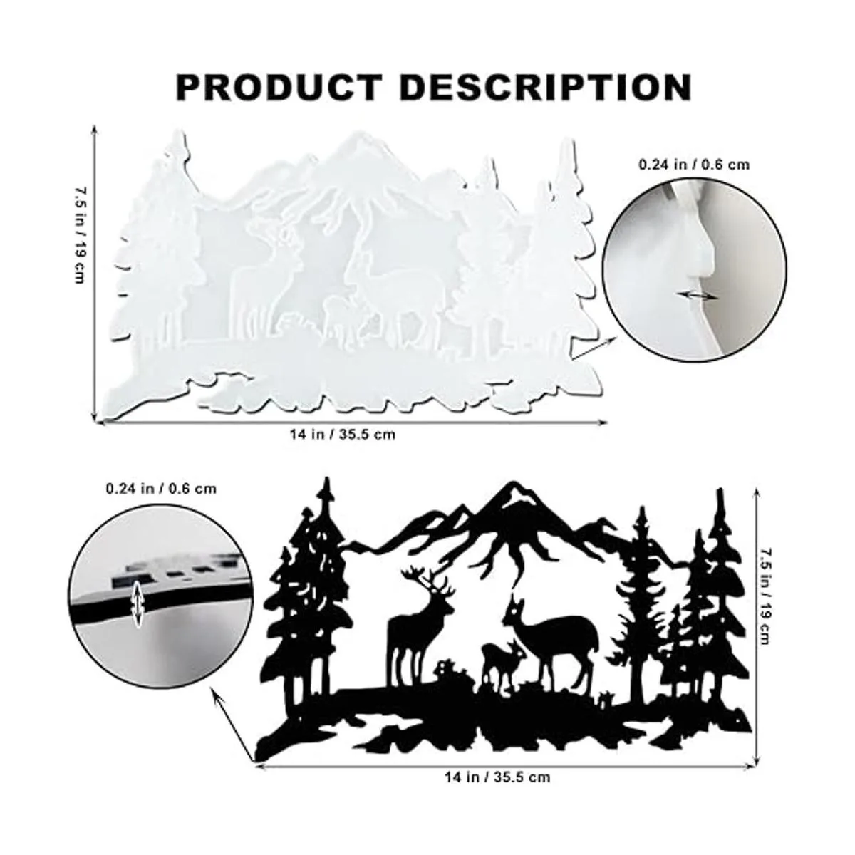 Molde de arte de pared familiar de ciervos: moldes de silicona de alta calidad, con superficie lisa, suave, fuerte y duradero. Son reutilizables. Tamaño del molde: 14 x 7.5 x 0.25 pulgadas. Tamaño del patrón: 14 x 7.5 x 0.25 pulgadas.