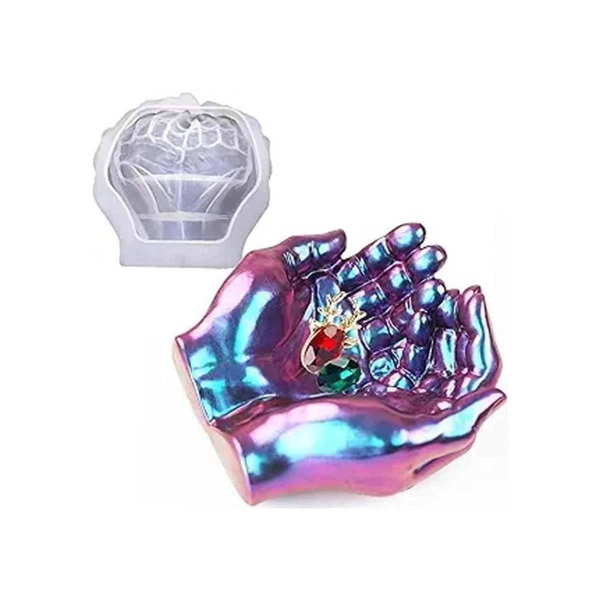 Molde de resina para platos de manos, bandeja modelo de forma de manos, molde de fundición epoxi de silicona, para almacenamiento de joyas, plato de caramelo, maceta suculenta, decoración del hogar, regalo de manualidades