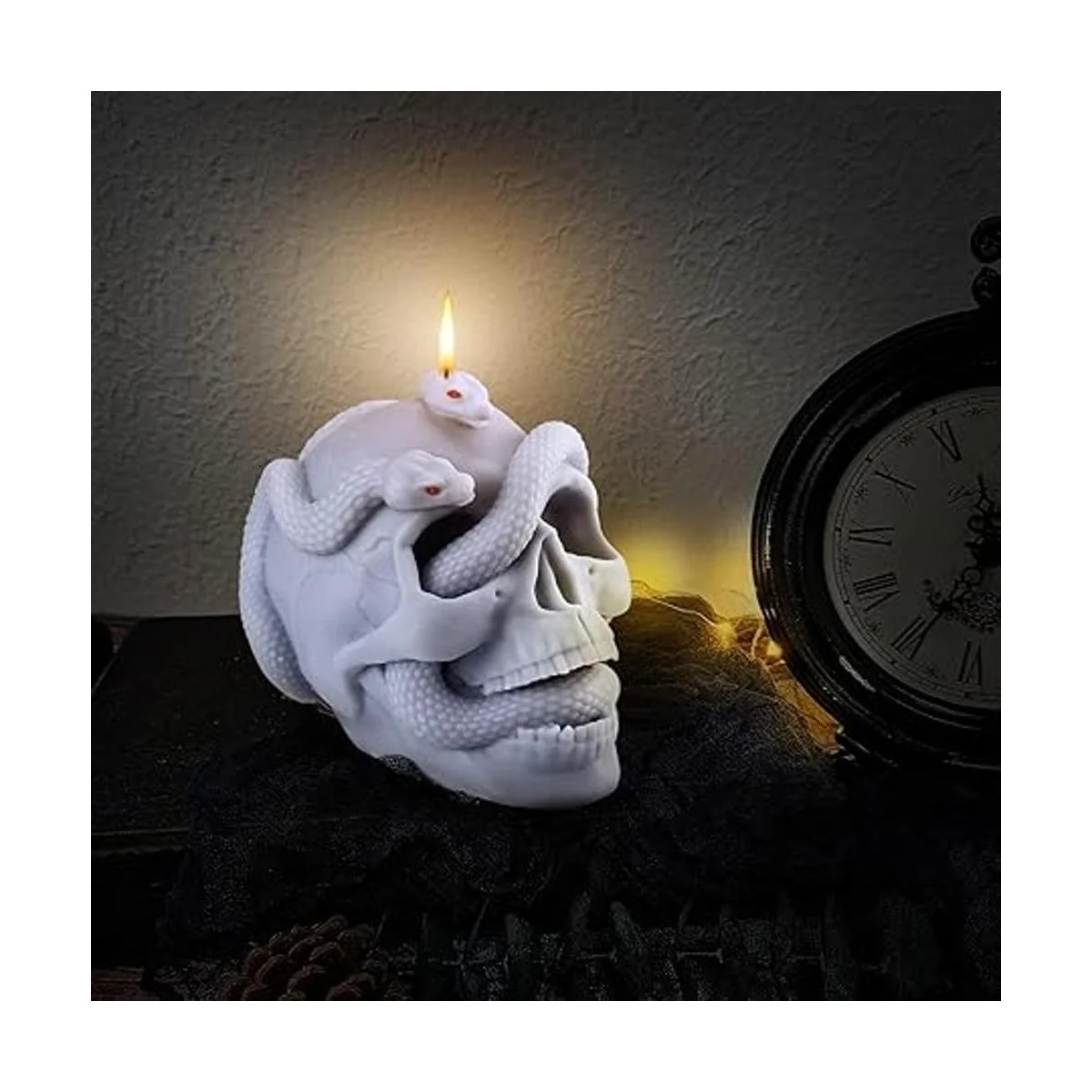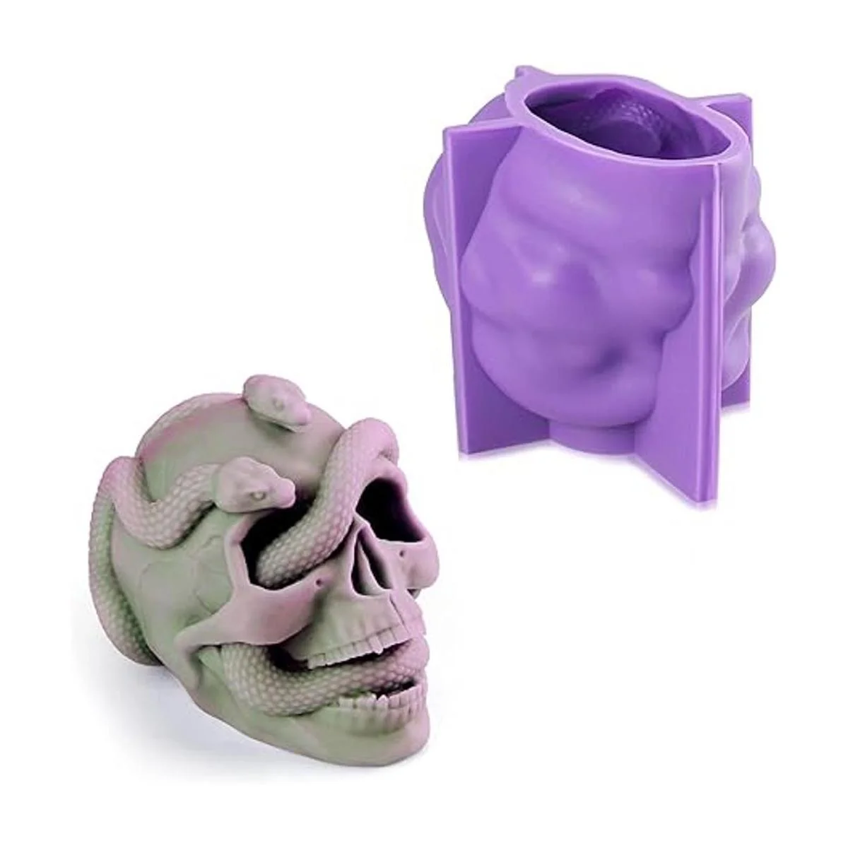 Molde grande de calavera de serpiente de cabeza completa para fundir candelabros, jabón, pasteles, azúcar, chocolate, fondant y accesorios de decoración de Halloween