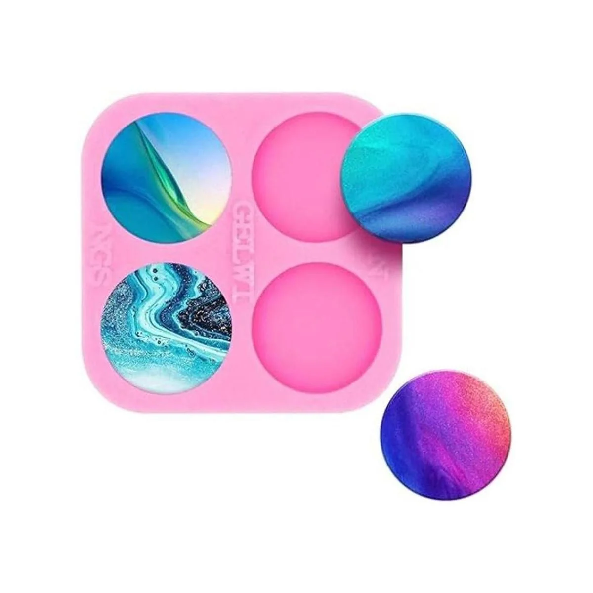 Molde de silicona súper brillante de 1.5 pulgadas para bricolaje de círculo redondo de agarre de teléfono, moldes de enchufe de teléfono para resina epoxi, molde de silicona de 4 cavidades para bricolaje de resina fundición de joyas, molde de carrete de insignia