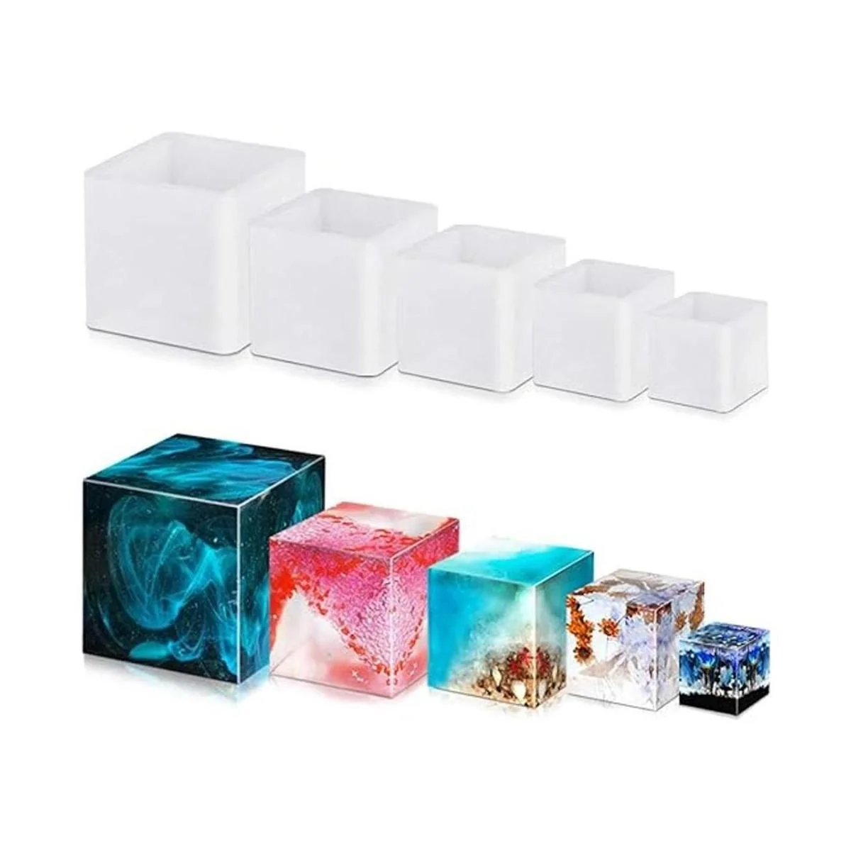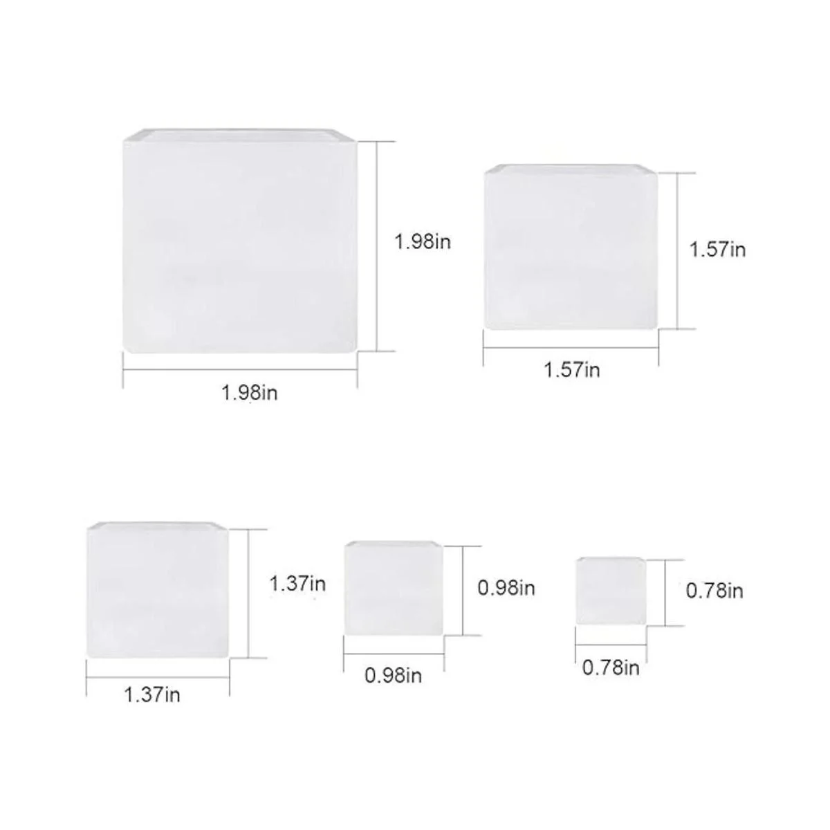 Juego de moldes de resina: este juego de moldes de resina de silicona contiene 5 moldes cuadrados de resina de diferentes tamaños, incluyendo 2.0 in, 1.6 in, 1.4 in, 1.0 in, 0.8 in. Todos los tipos de tamaños pueden satisfacer tus diversas necesidades.