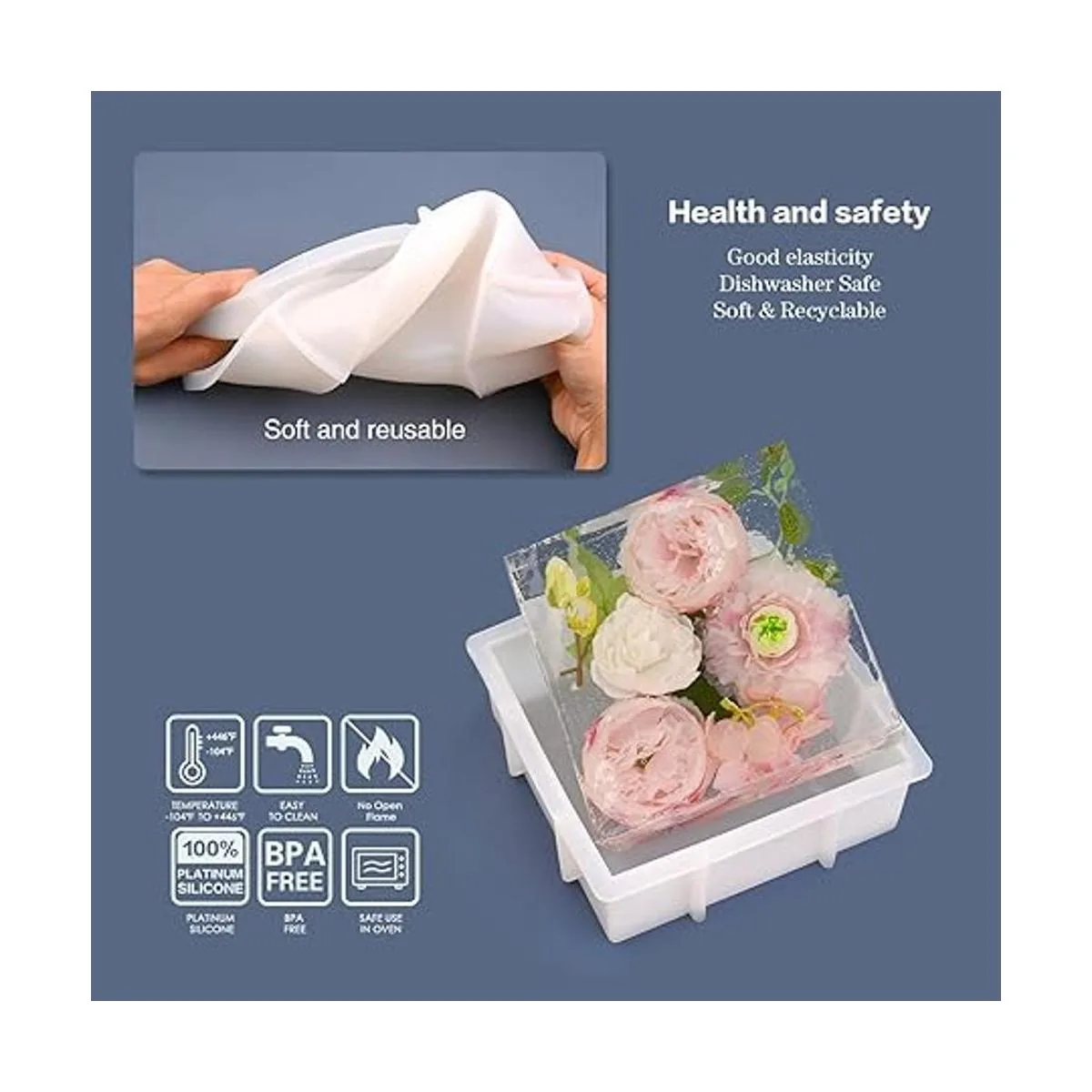 Moldes cuadrados de silicona para resina, moldes de resina grandes, moldes de resina profunda para preservación de flores, moldes epoxi para fundición de resina, muestras de insectos, resina, regalos de arte para decoración del hogar 6.6 x 2 pulgadas