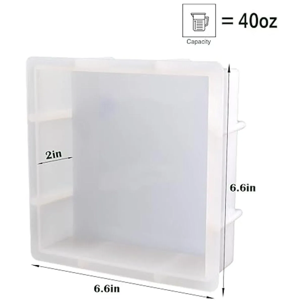 Moldes de resina grandes: las dimensiones del molde de resina cuadrada miden 6.6 x 6.6 x 2 pulgadas, se requiere aproximadamente 40 onzas de resina para llenar los moldes a completo, se recomienda verter resina en capas mientras se utilizan moldes de resina de gran tamaño. Puedes hacer cuadrados de cualquier grosor, utiliza tu imaginación para crear diferentes manualidades de resina.